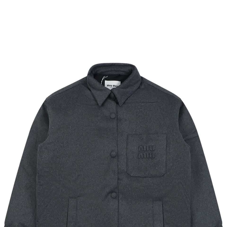 Designed with a clean and structured silhouette, the jacket offers a relaxed yet refined fit that complements various body types. The double-layer shirt-style collar, crafted from the same cashmere fabric, features precise pattern alignment, adding depth and visual balance to the overall design.