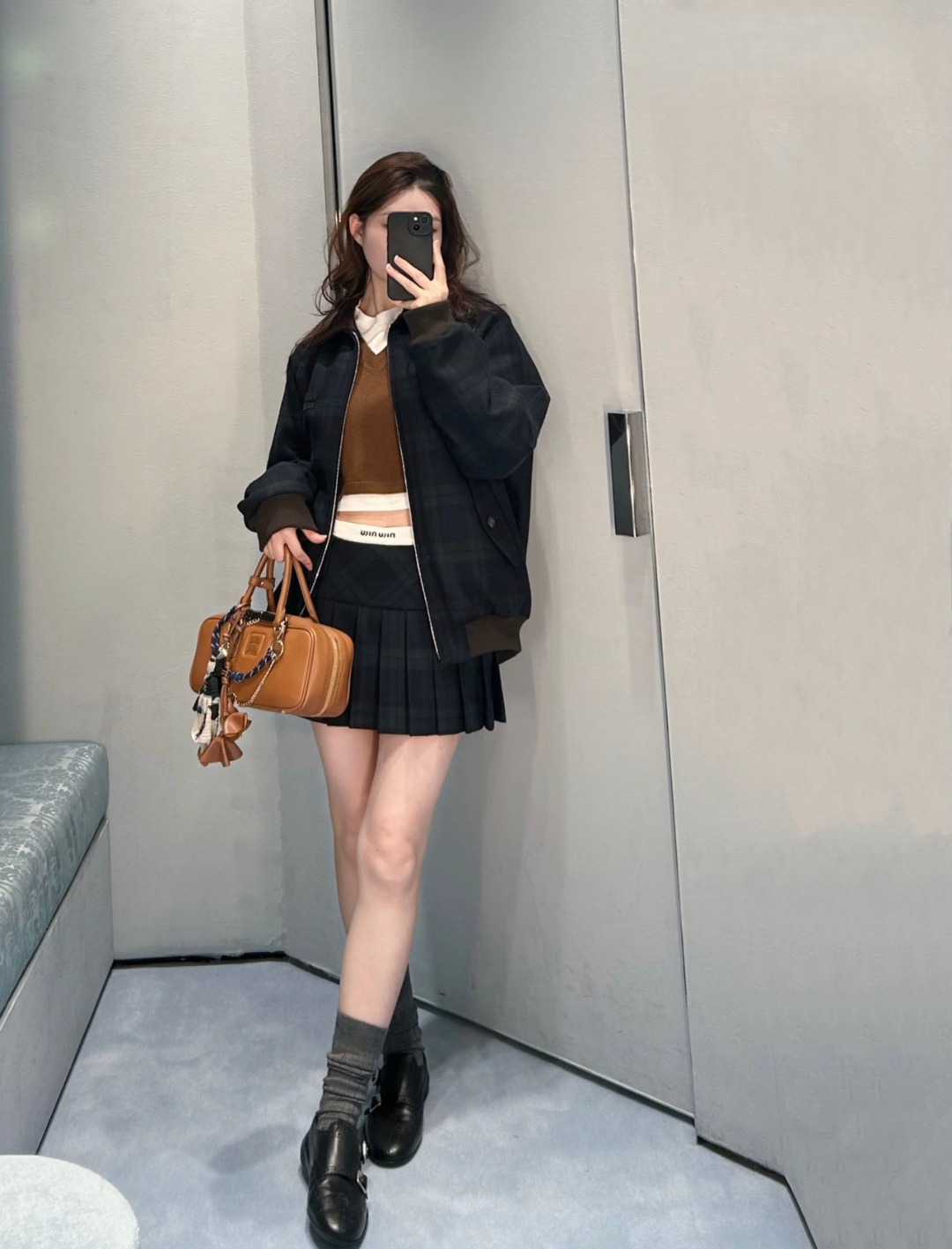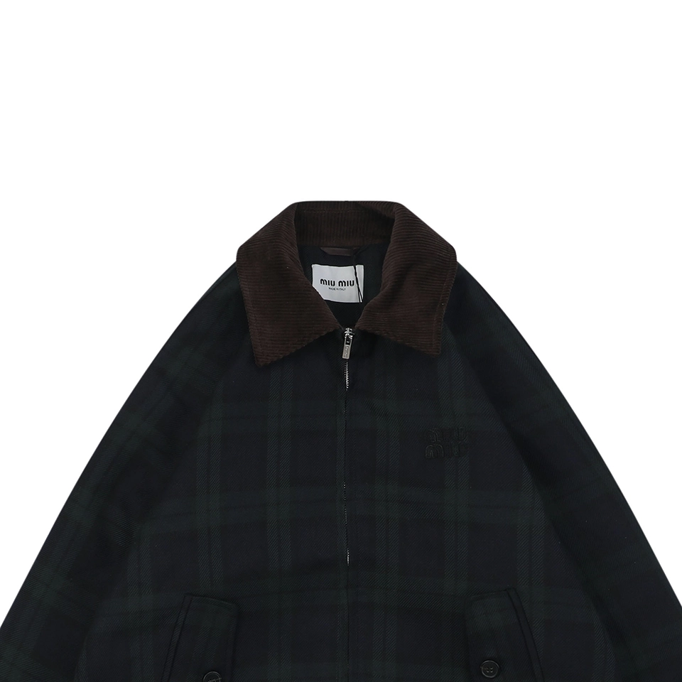 Achieving the refined dark green tone and precise plaid proportions requires meticulous color calibration and yarn alignment prior to weaving. This high-level craftsmanship ensures clean pattern continuity across the front placket, side seams, sleeves, pockets, and collar, creating a cohesive and balanced visual appearance throughout the garment.
