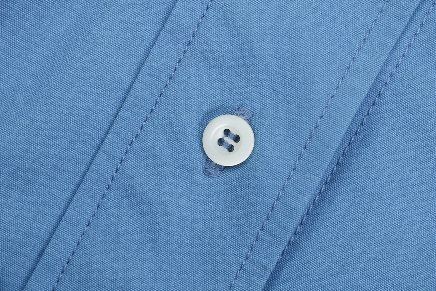 Additional premium details include custom genuine mother-of-pearl buttons, each showcasing natural iridescence, consistent thickness, and unique grain patterns. Exclusive 2025 custom trim labels are precisely matched in material, size, and typography, while the rear neck label is secured with a minimalist four-stitch technique for a clean interior finish.