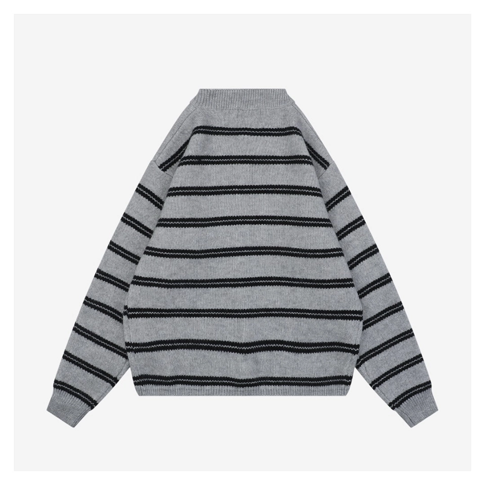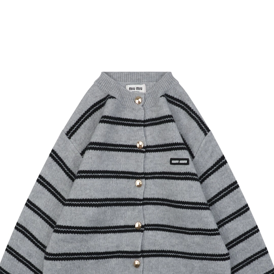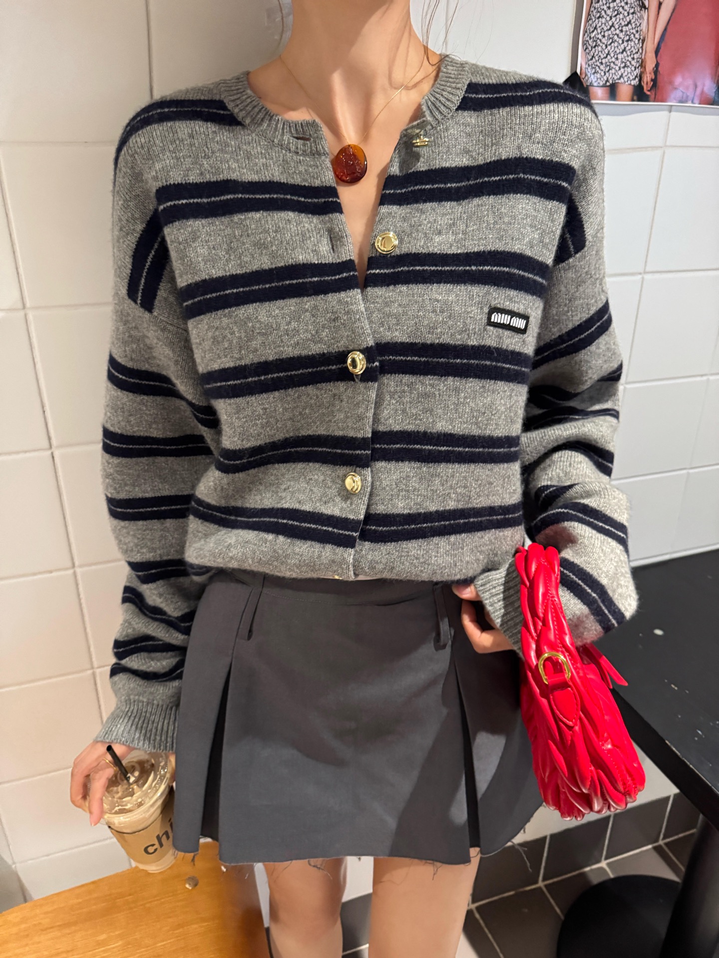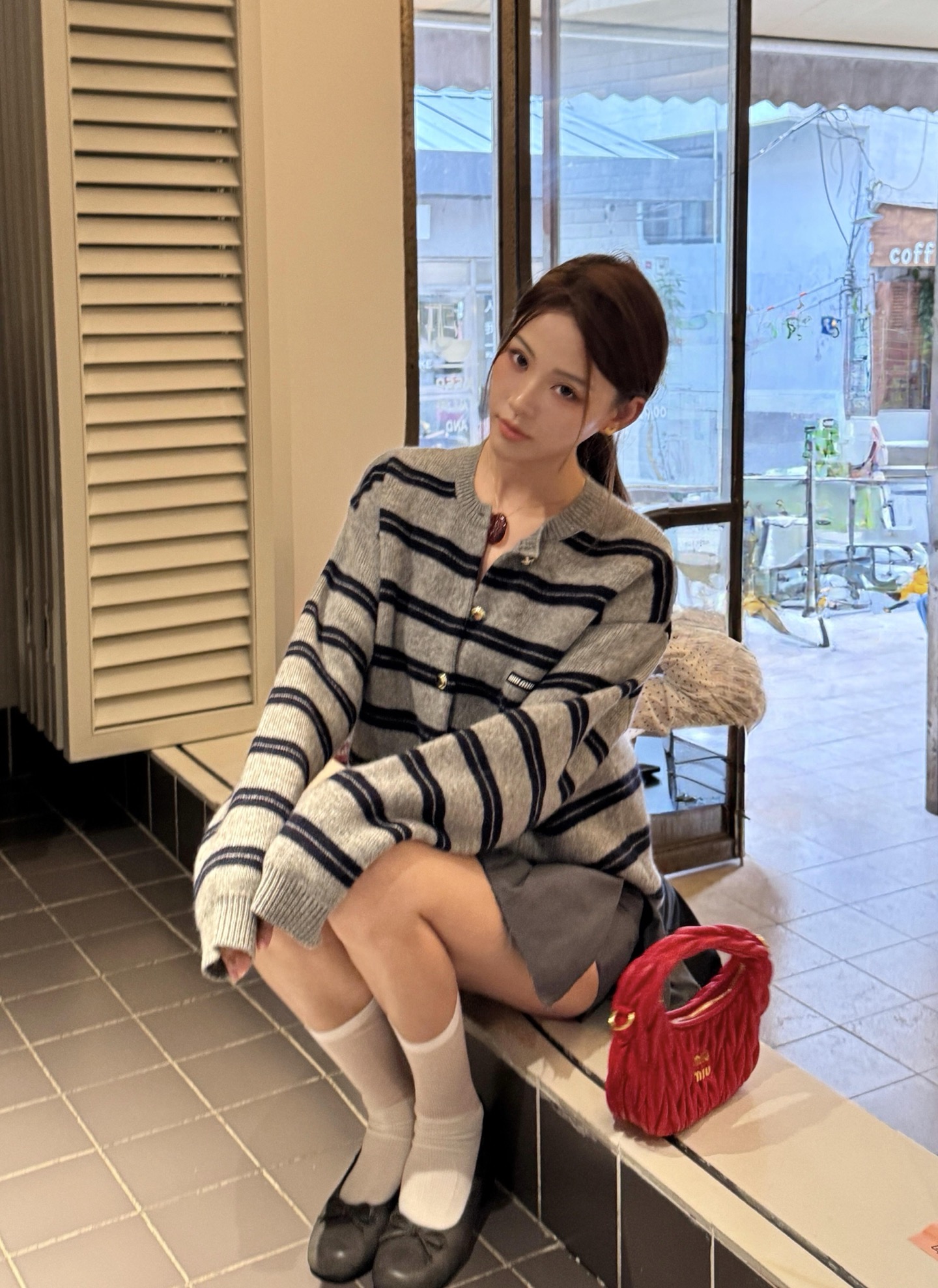 This MM Grey and White Striped Knit Cardigan features a timeless grey-and-black stripe pattern paired with a relaxed, oversized silhouette for effortless styling. Crafted from a mid-weight knit fabric, the cardigan offers structure without feeling bulky, making it suitable for both layering and standalone wear.