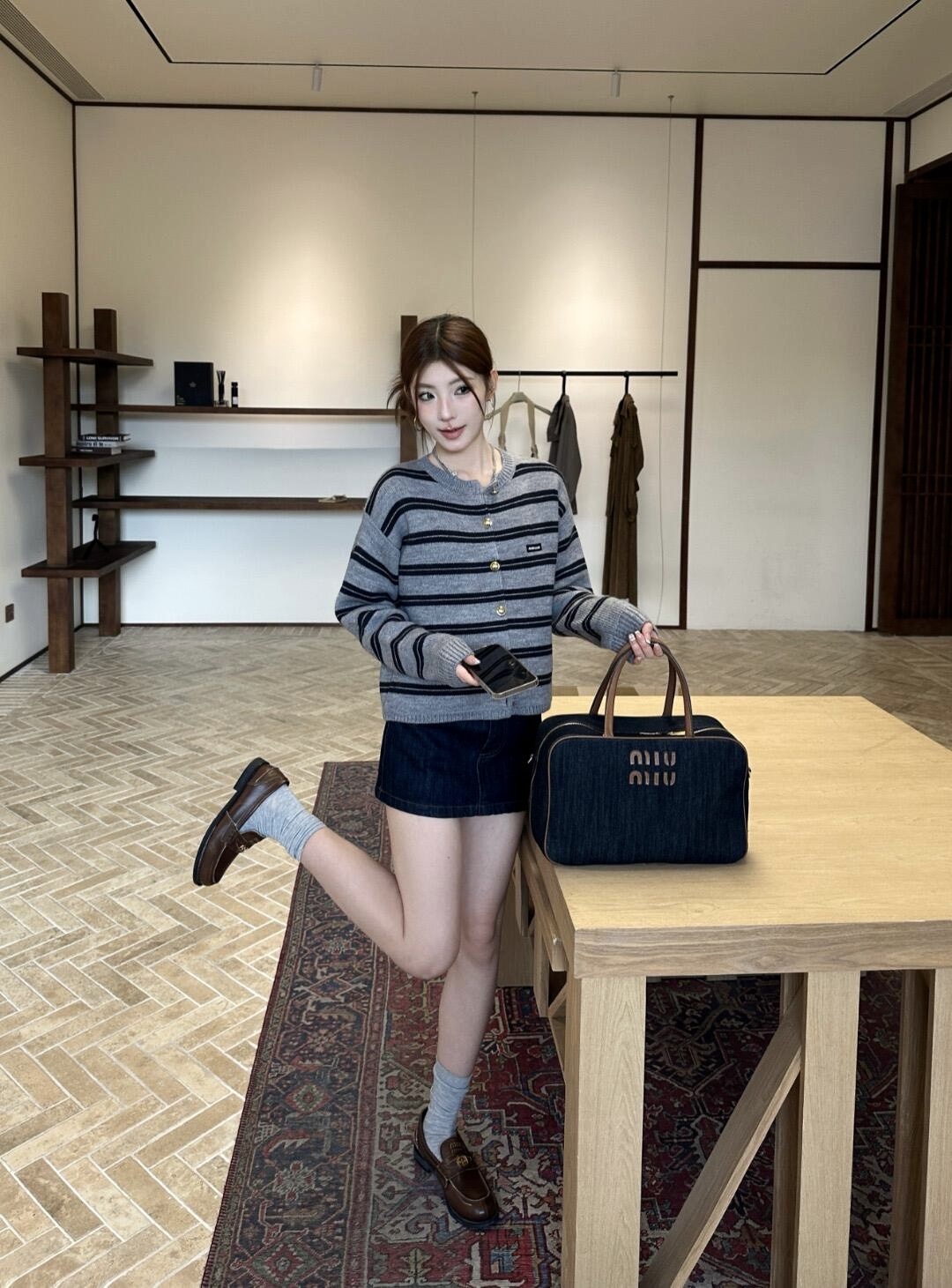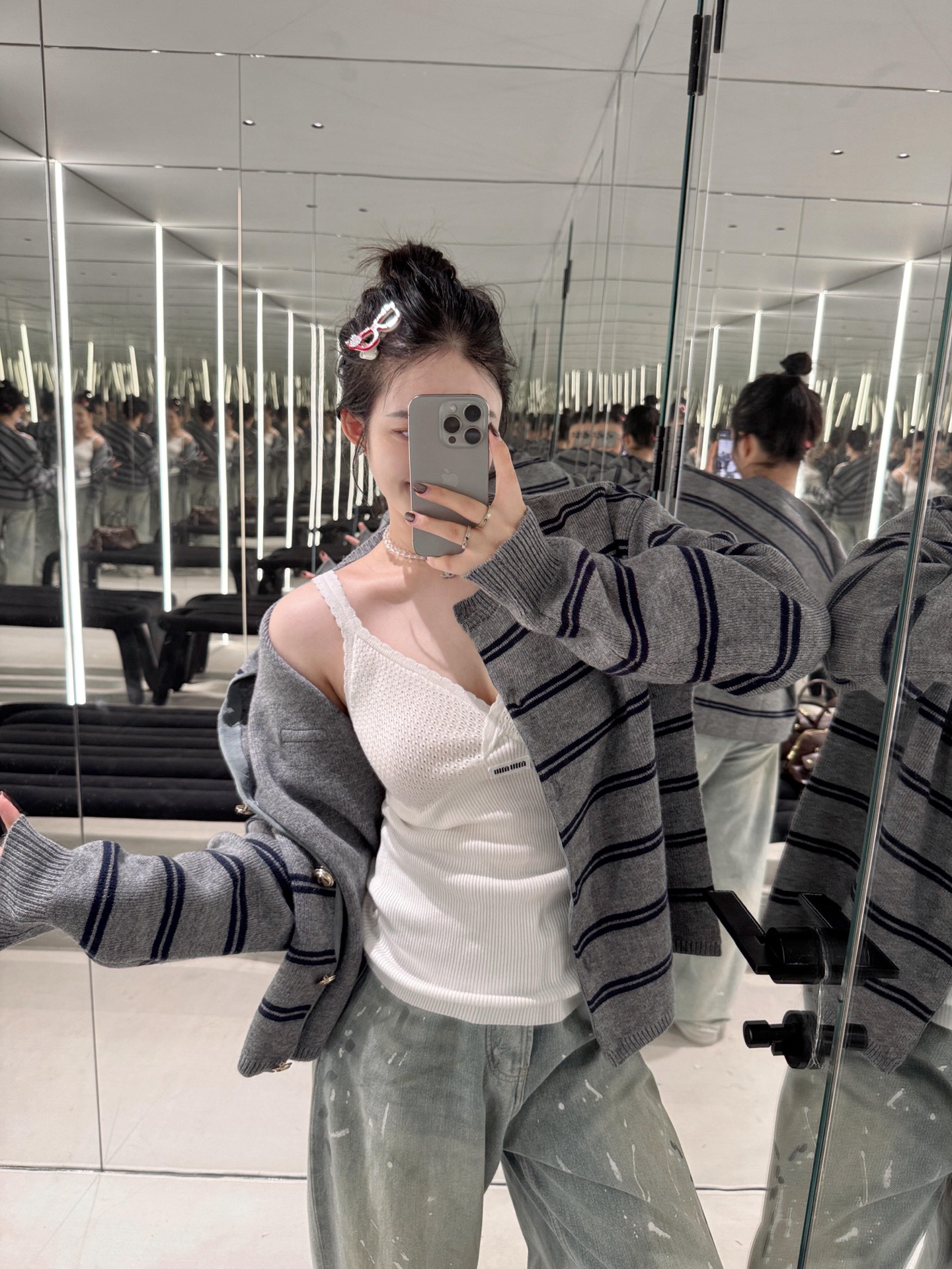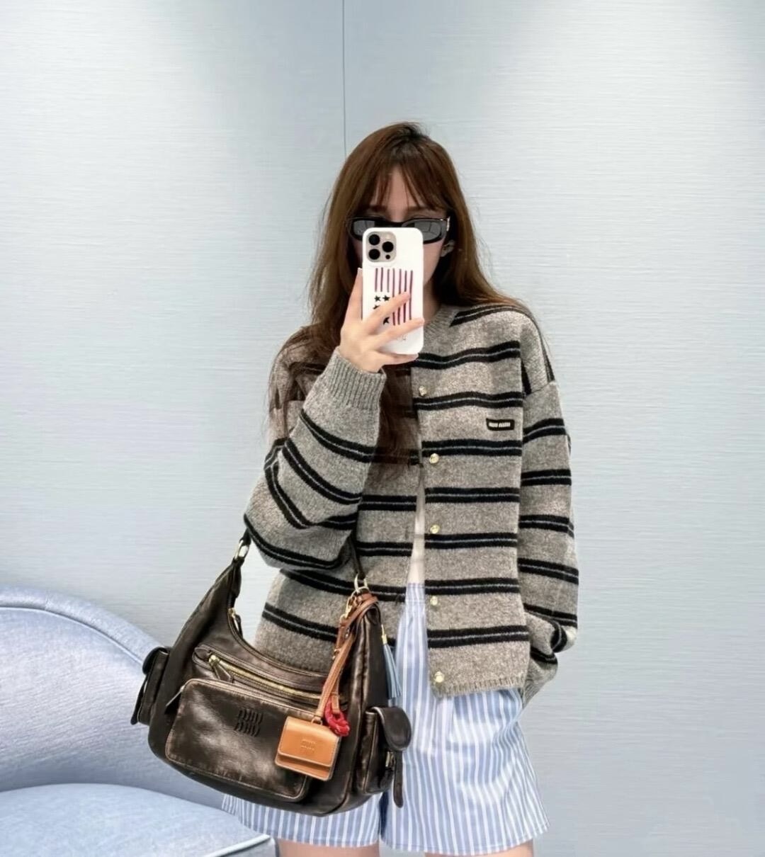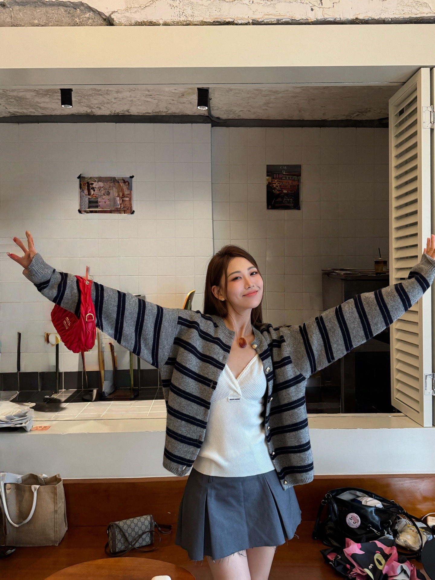 This MM Grey and White Striped Knit Cardigan features a timeless grey-and-black stripe pattern paired with a relaxed, oversized silhouette for effortless styling. Crafted from a mid-weight knit fabric, the cardigan offers structure without feeling bulky, making it suitable for both layering and standalone wear.