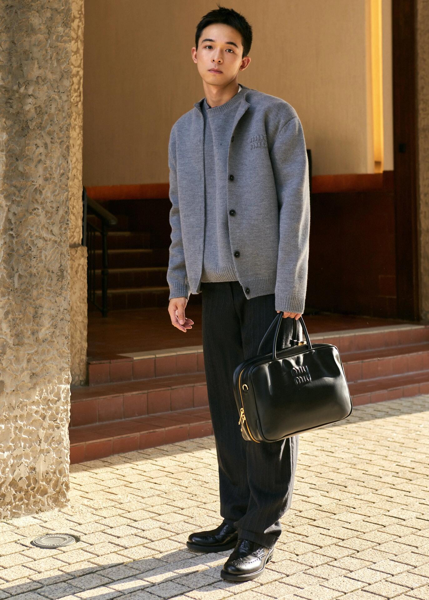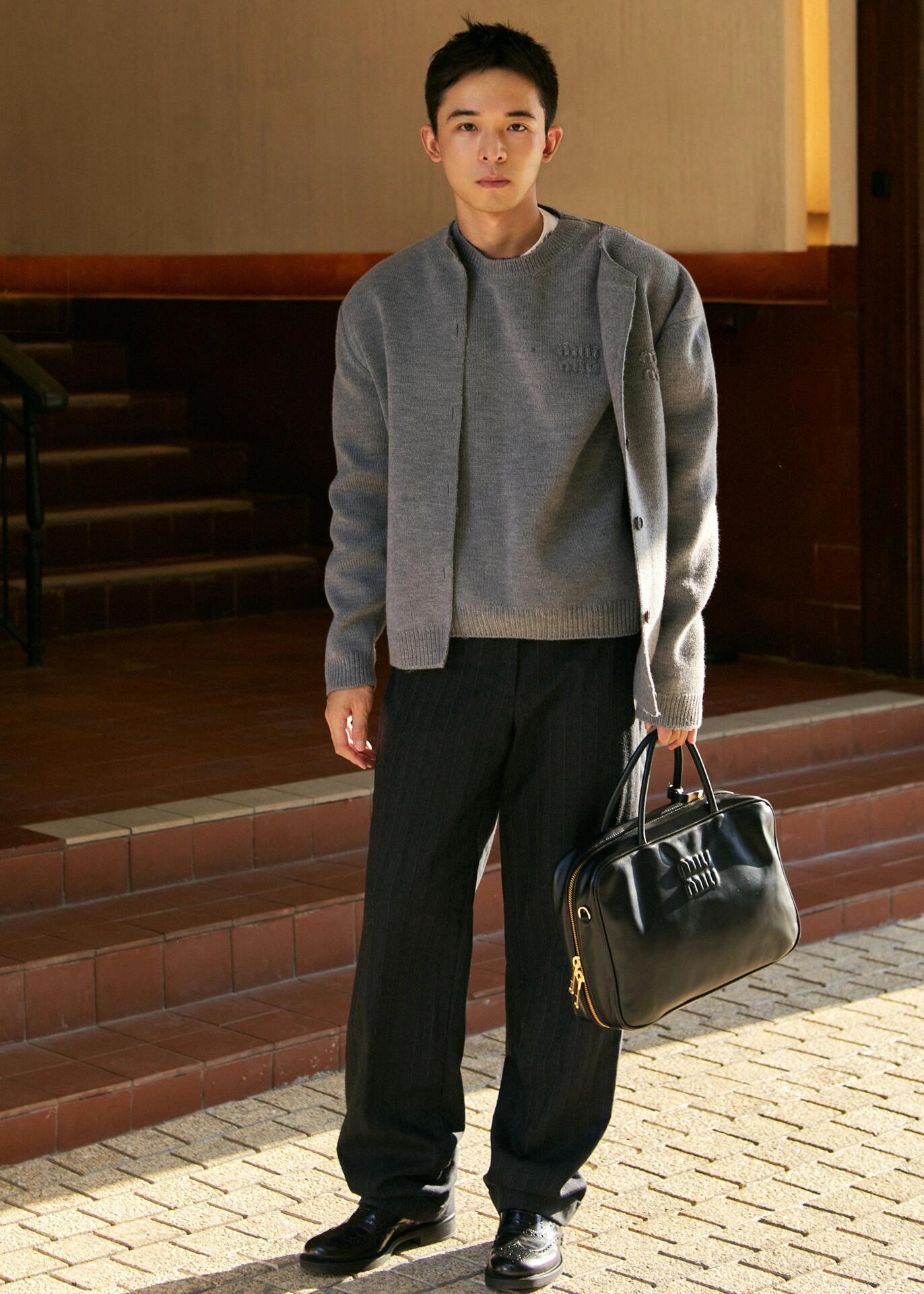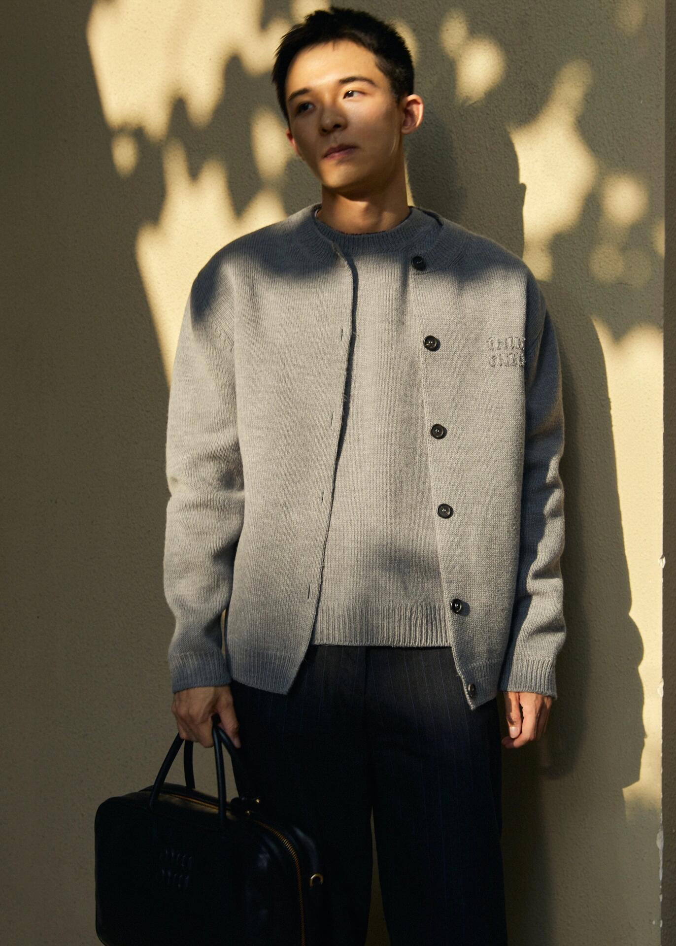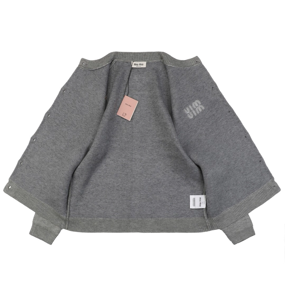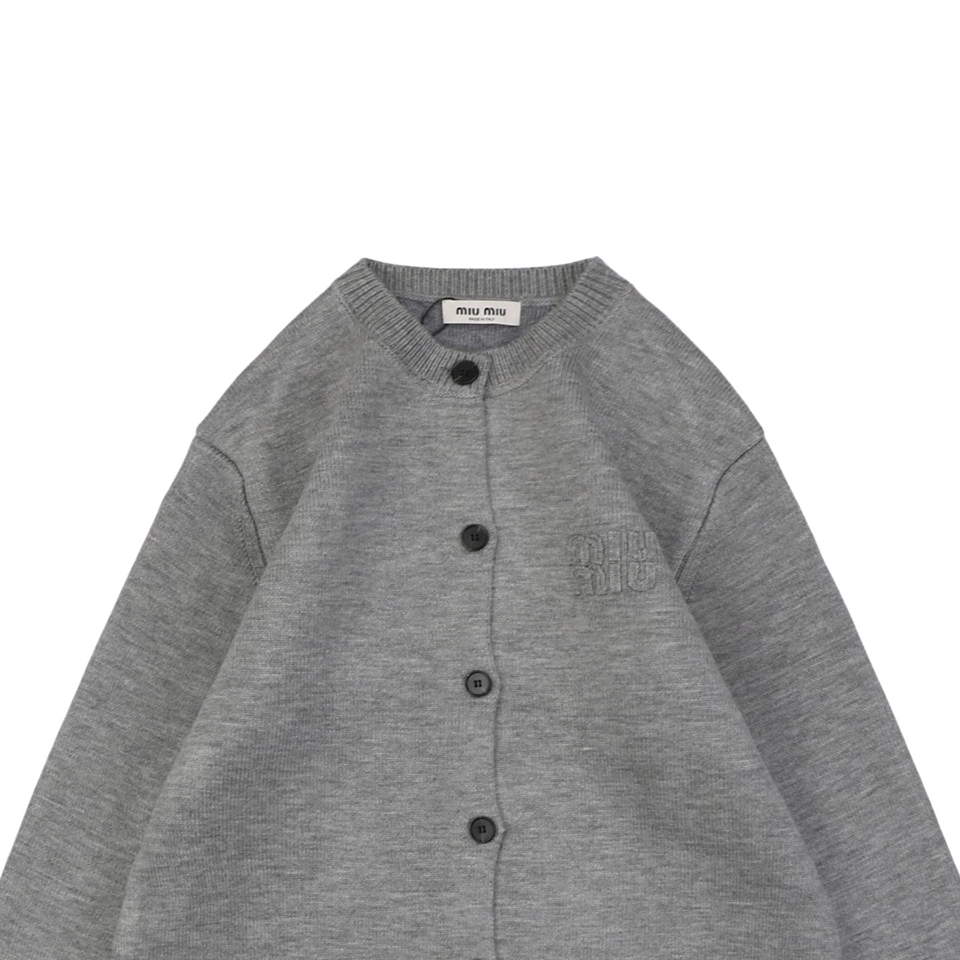 The MM Grey Knit Button Jacket blends minimalist design with understated luxury. Cut from low-saturation grey knit fabric, this piece features a round neckline, ribbed cuffs and hem, and a tonal embroidered logo on the chest for a refined finish. The full-button front adds structure, while the soft-touch texture delivers effortless comfort in cooler weather. Ideal for layered styling or standalone wear.
