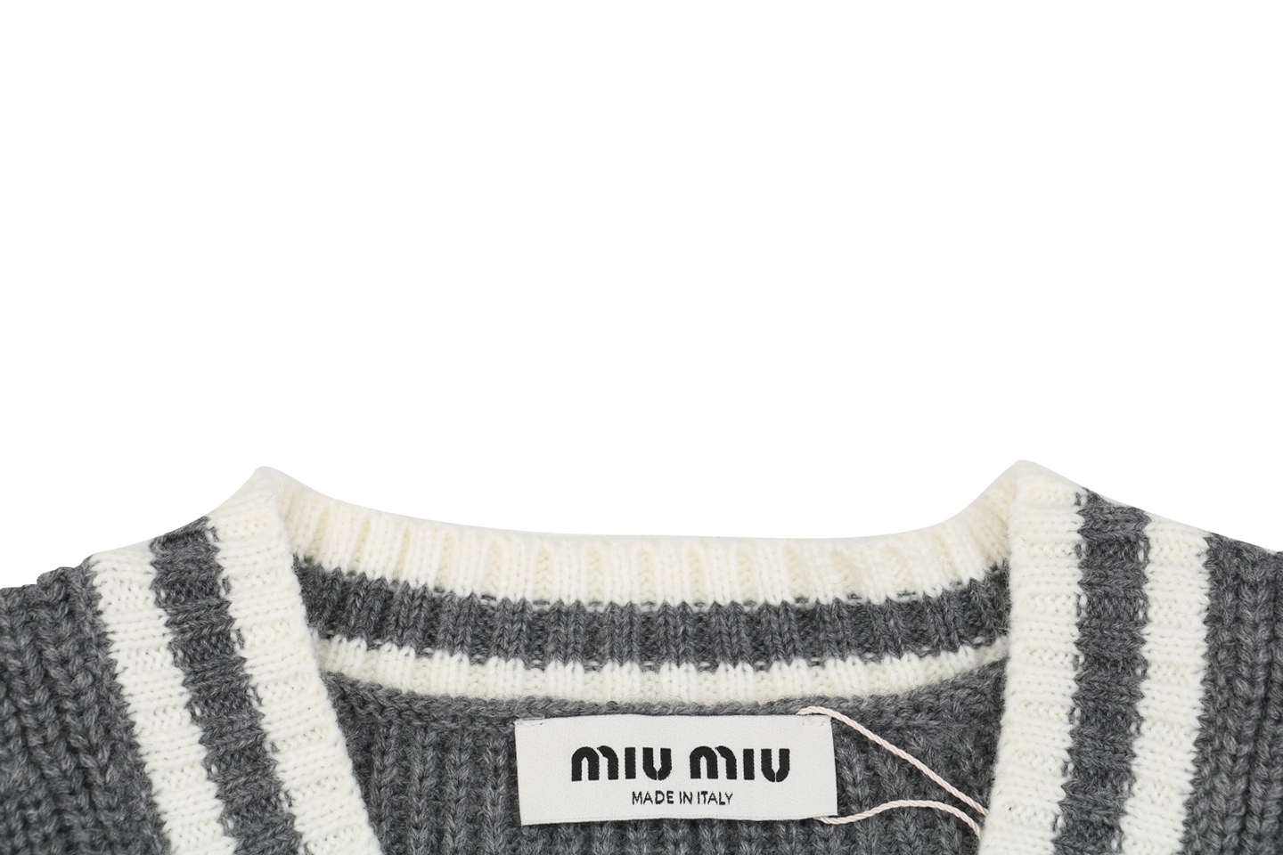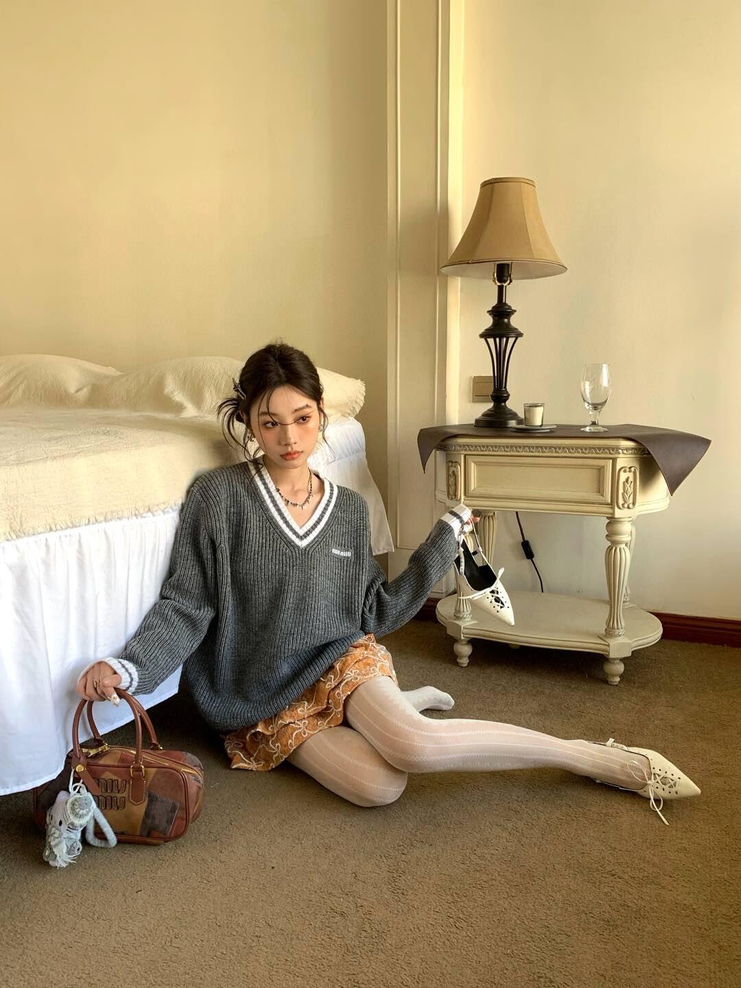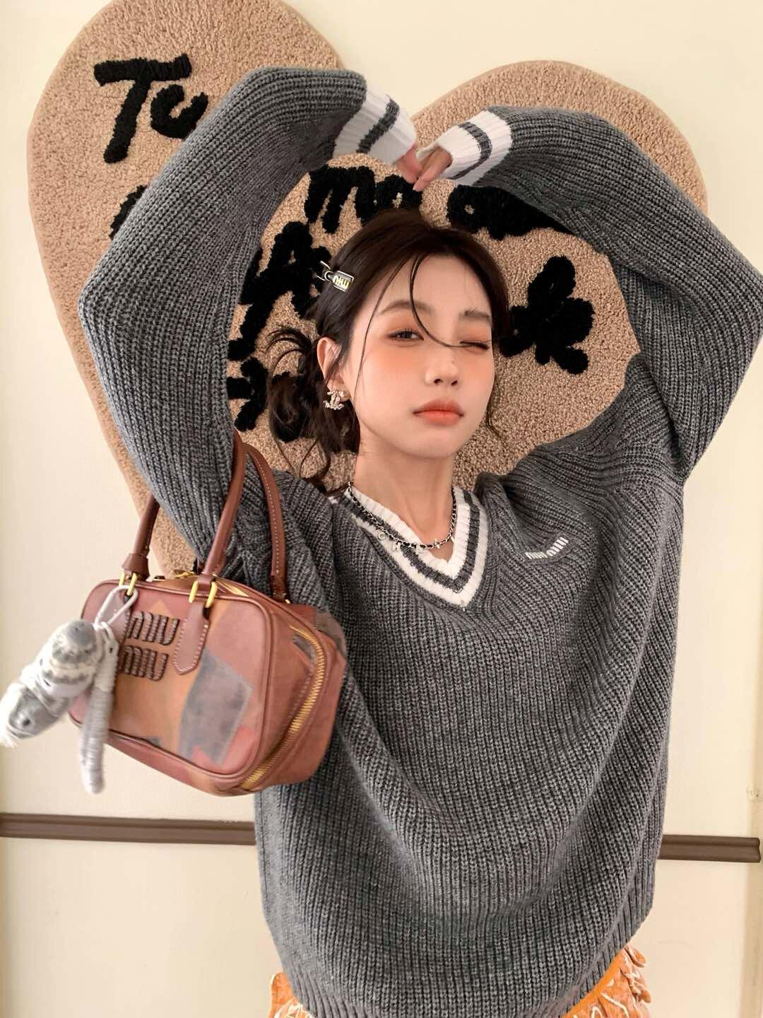 The MM Grey/White Logo V-Neck Sweater delivers a refined balance of collegiate-inspired styling and modern minimalism. Crafted from a soft knit, it features a deep V-neckline trimmed with white contrast stripes, ribbed cuffs and hem, and a discreet MM logo embroidery on the chest. The relaxed fit makes it versatile for layering over shirts or pairing with tailored bottoms, embodying effortless elegance with a sporty twist.