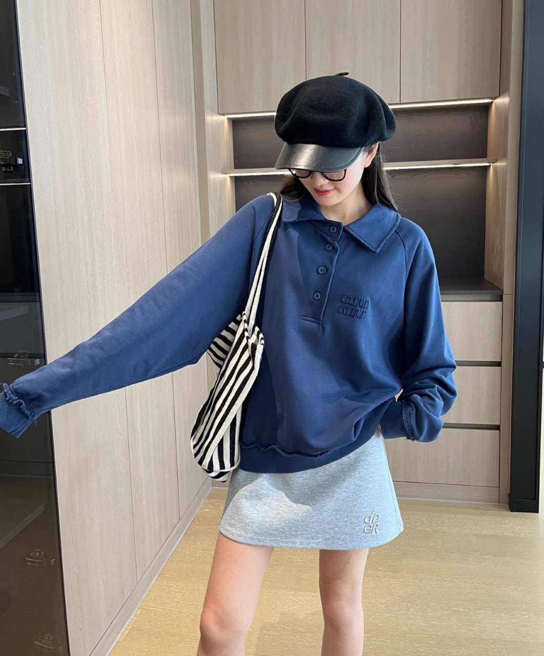 The MM Klein Blue Polo Sweatshirt is crafted from 480g premium Xinjiang long-staple cotton, delivering a dense, structured, and luxurious hand feel. The fabric undergoes intensive pre-washing before garment construction, followed by a secondary garment wash, ensuring zero shrinkage, long-term shape retention, and a smooth, well-structured polo collar.