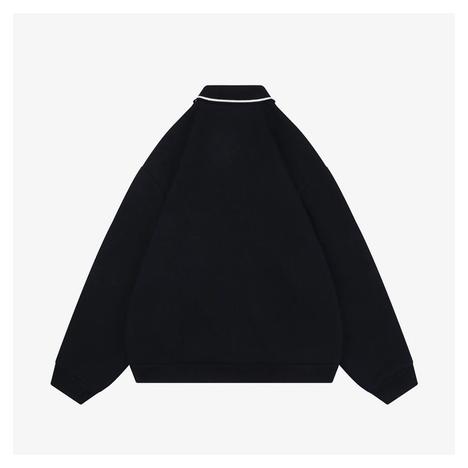 The full-length zipper allows for easy wear, while elasticated cuffs and hem enhance comfort and help define the shape. The relaxed unisex fit offers versatility, allowing the jacket to be styled effortlessly for casual, collegiate, or laid-back urban looks.