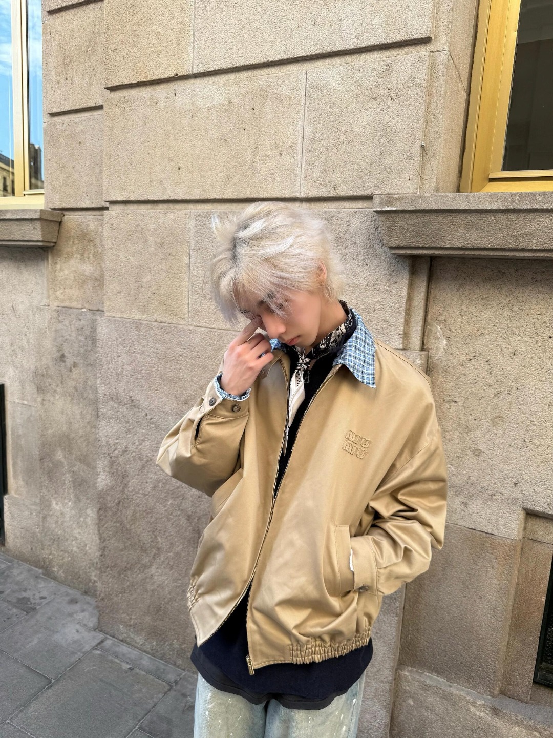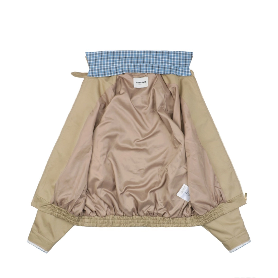 The MM Plaid Layered Collar Embroidered Jacket blends collegiate charm with minimalist sophistication. Crafted in a structured beige fabric, the jacket is highlighted by its contrasting blue plaid layered collar, creating a refined two-piece illusion. The front features a subtle tonal embroidered MM logo, while the elasticated cuffs and hem provide both shape and comfort. A full-zip design and angled pockets complete this versatile piece, perfect for layering in transitional seasons.