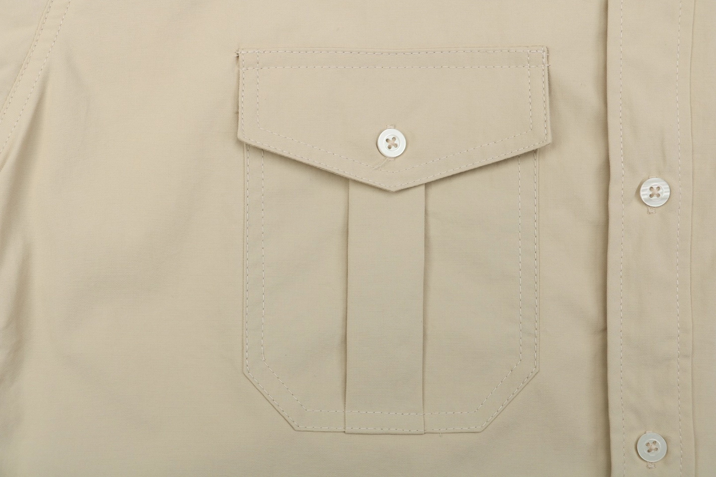 Finished with a delicately embroidered logo on the chest, classic flap pockets, and a clean button-front closure, this shirt delivers understated luxury with timeless appeal.