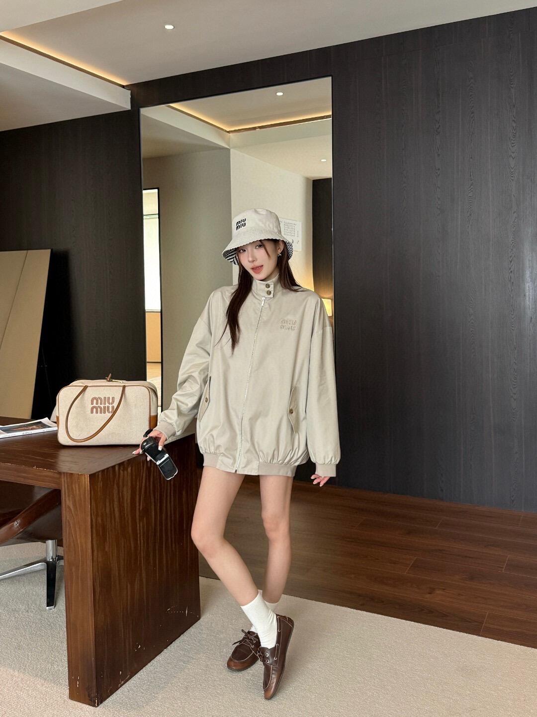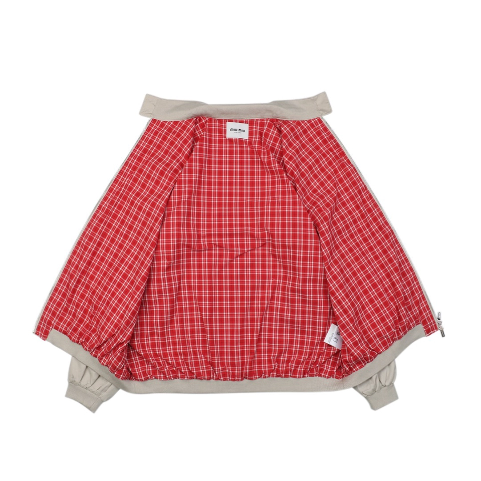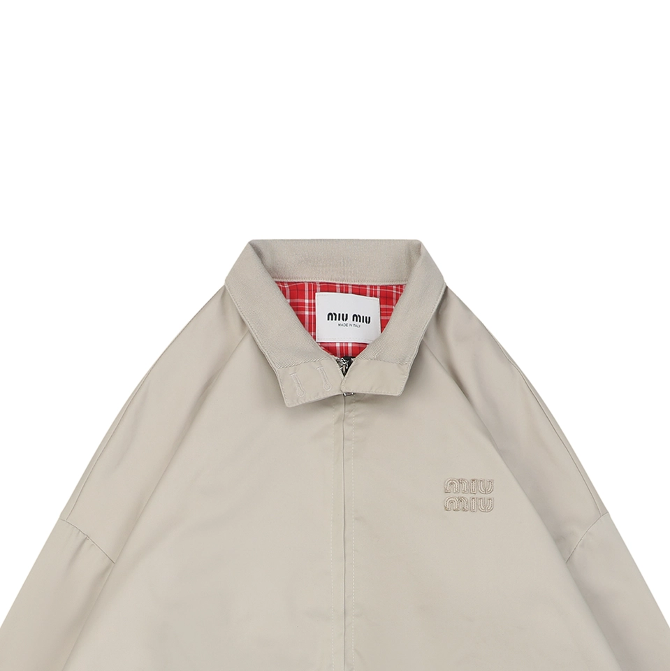 The MM Small Logo Check-Lined Harrington Jacket is crafted from premium 80s double-twist twill cotton, specially woven and dyed for a crisp yet lightweight finish. The fabric uses an S/Z alternating twisting technique to enhance fiber strength, achieving a high-density structure of 500T, giving the jacket excellent shape retention while remaining comfortable for daily wear.