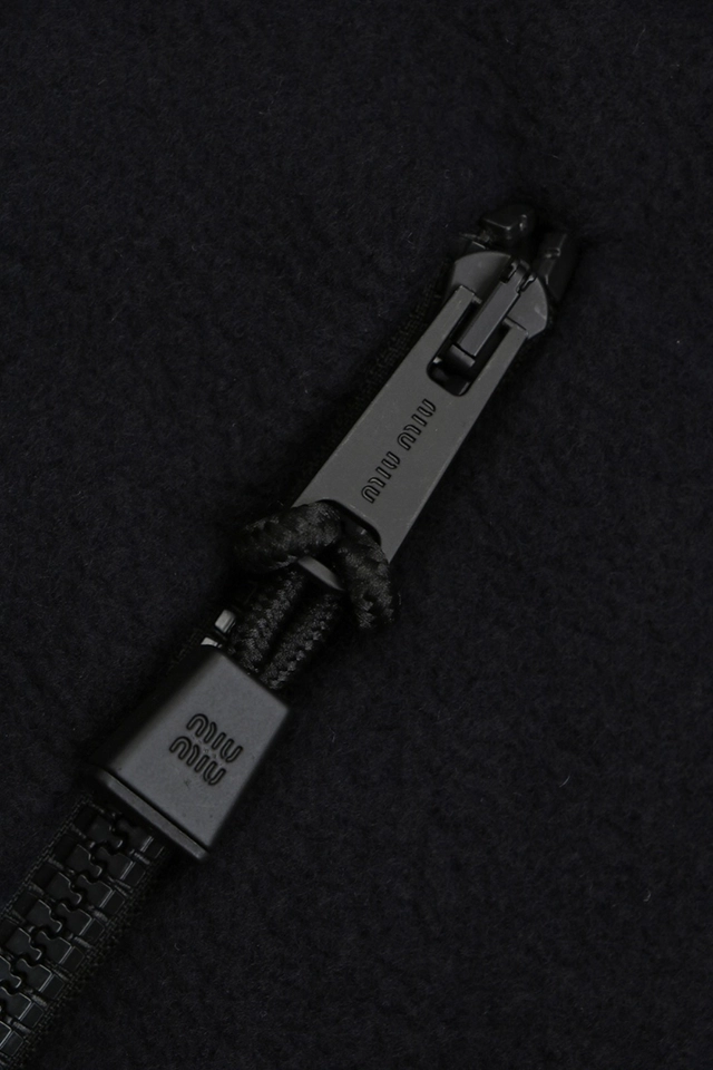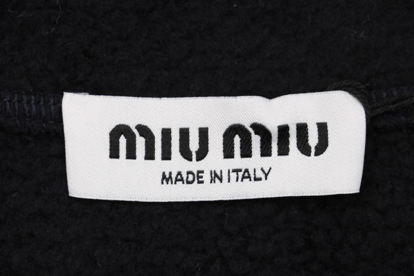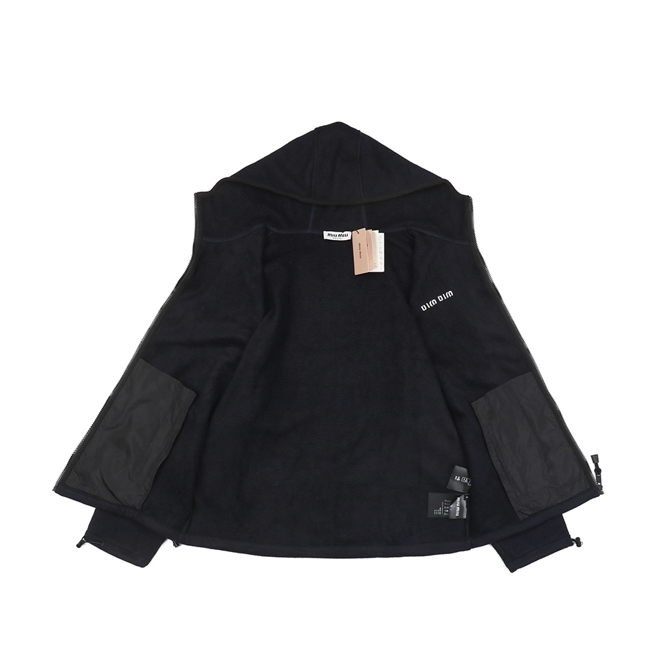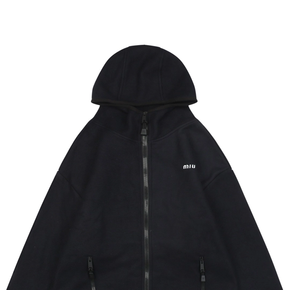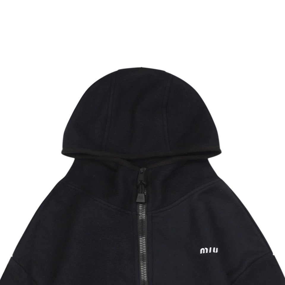 Crafted for transitional seasons, the MM Small Logo Fleece Zip Hoodie – Black delivers understated utility and comfort. Constructed from premium fleece fabric, this zip-up hoodie provides warmth without unnecessary bulk. A minimalist “miu” chest logo subtly elevates the front, while tonal zipper pockets and adjustable drawcords at the hem add both visual balance and practical function. The oversized hood and relaxed cut make it ideal for layering during colder months.