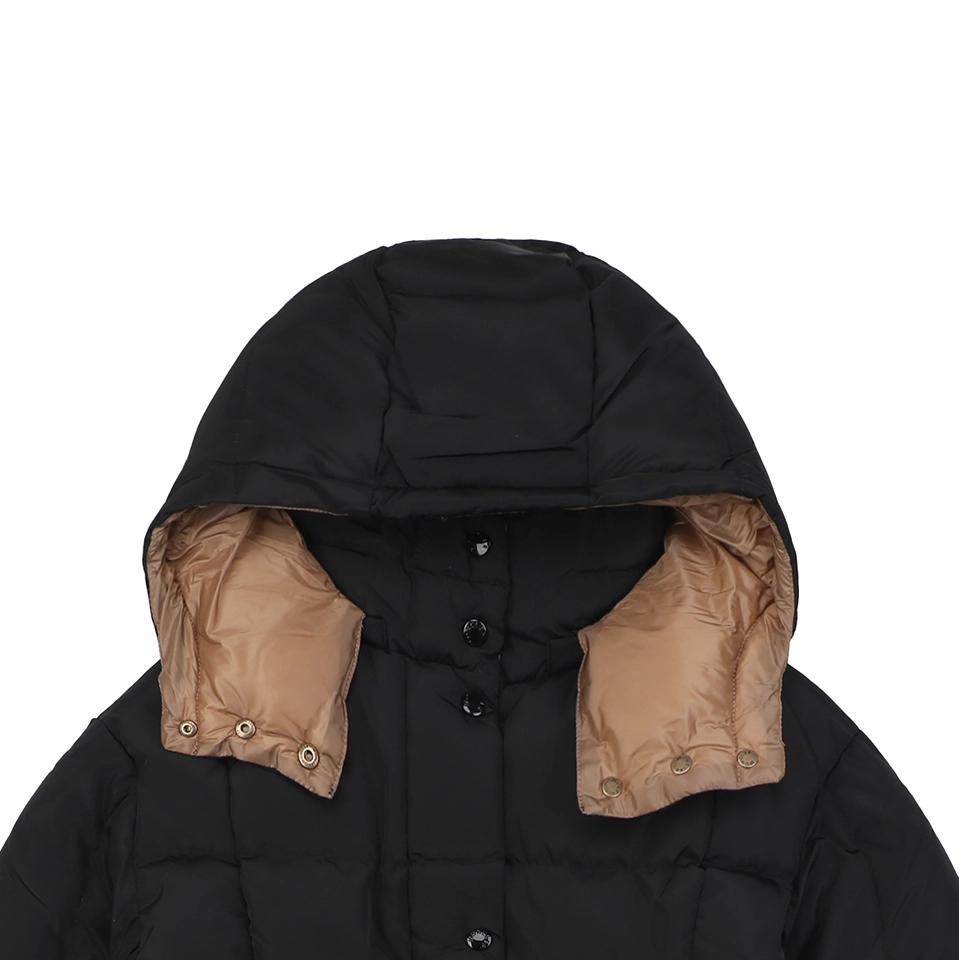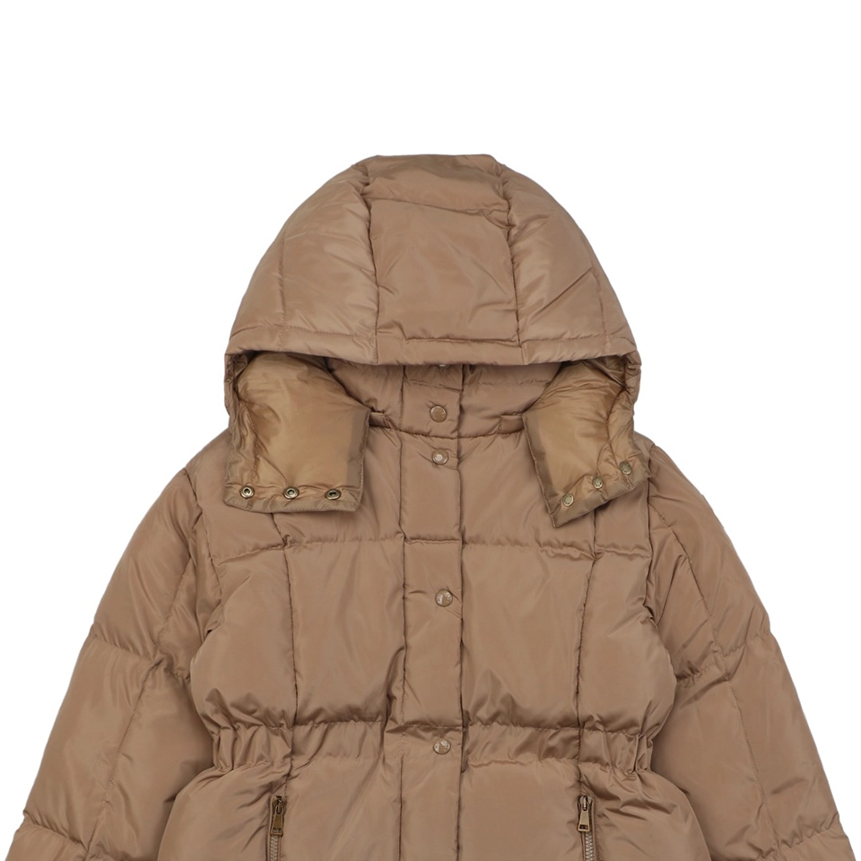 Featuring Longuesaison lining, the jacket achieves exceptional lightness while maintaining impressive insulation. Filled with premium white duck down, it ensures warmth, comfort, and reliable cold-weather protection. The detachable and adjustable hood provides versatile styling options, while the cinched waist subtly enhances the wearer’s shape for a more flattering fit.