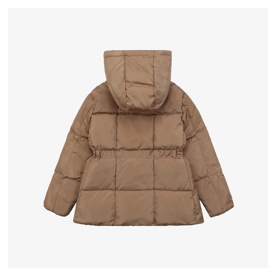 The Mxxcler Agneux Square-Quilted Hooded Down Jacket #MS-776 blends protective performance fabrics with refined textural design. Crafted from functional nylon with a subtle satin sheen, the short silhouette highlights a feminine and structured profile. The signature square-quilt pattern enhances visual depth, delivering both modern elegance and timeless winter styling.