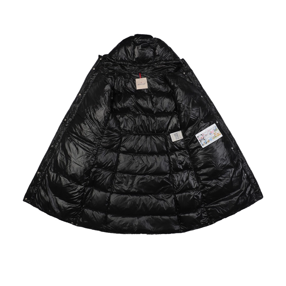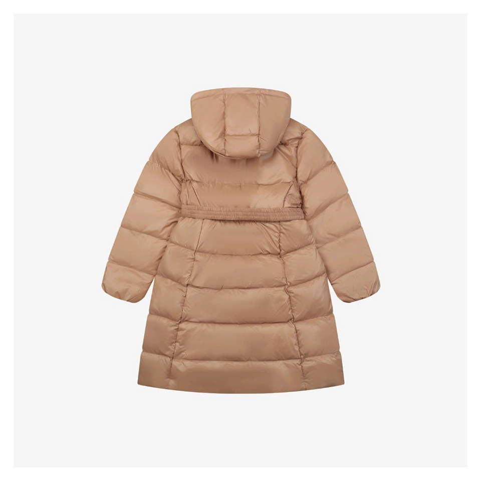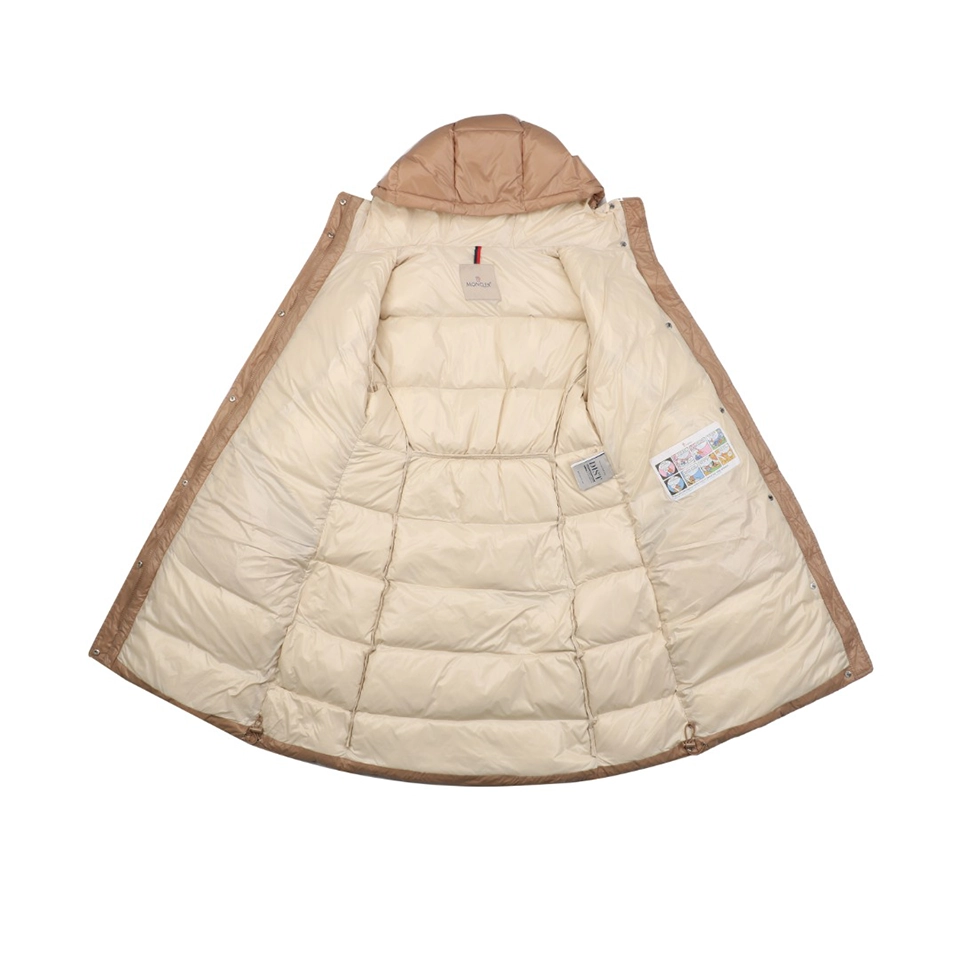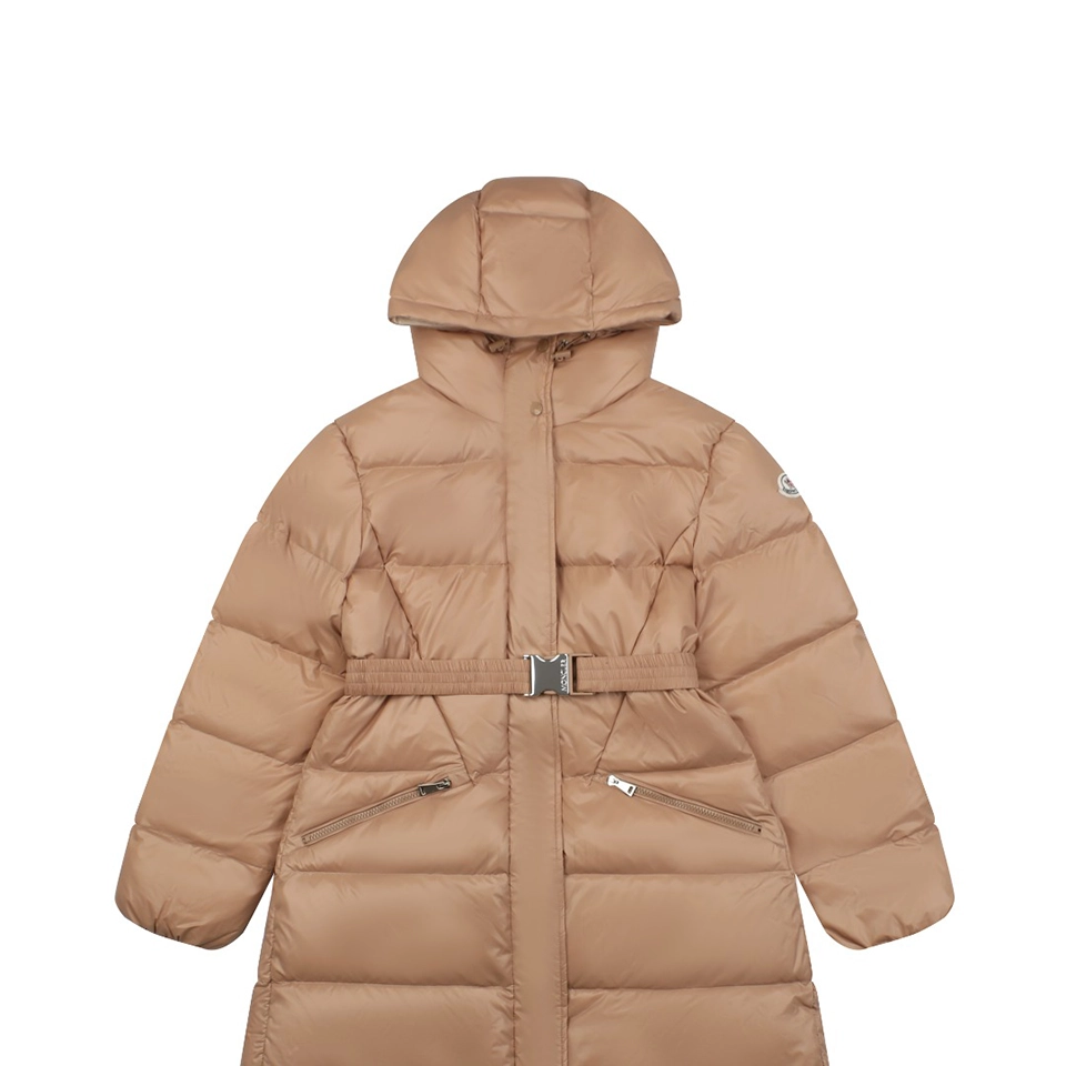 Filled with premium white duck down, this long-length silhouette provides exceptional warmth without compromising elegance. The adjustable elastic belt cinches the waist to create a flattering, feminine shape, while the attached hood offers added protection in cold and windy conditions. Finished with brand-correct hardware, custom zippers, and a streamlined structure, this down jacket is ideal for urban commuting, daily wear, and elevated cold-weather styling.