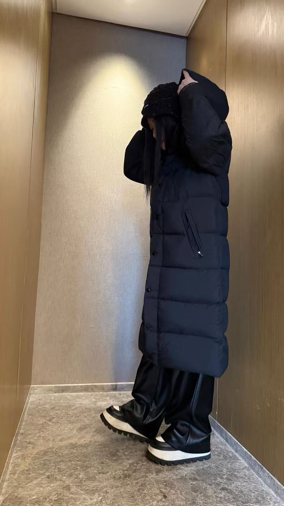 Filled with high-quality down insulation, the coat provides excellent thermal performance without unnecessary bulk. The detachable hood enhances versatility, adapting effortlessly to changing weather conditions. A combination of zip and snap-button closures ensures wind protection, while functional zippered pockets, an adjustable hem with drawcord, and adjustable cuffs add practical detailing. The matte finish elevates the overall aesthetic, making this piece both understated and sophisticated. Designed as a unisex down coat, it is ideal for commuting, travel, and everyday winter styling.