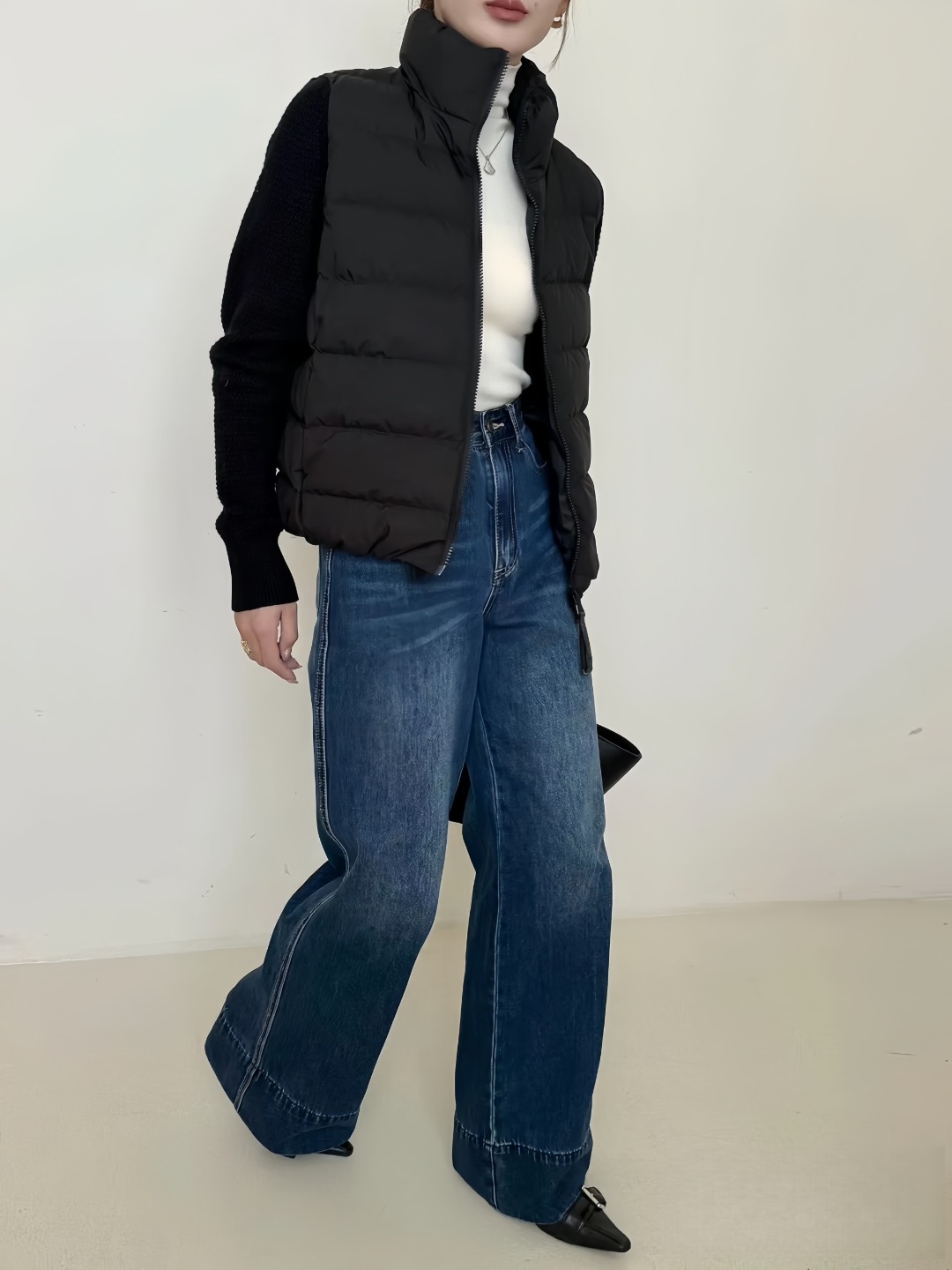 The Mxxcler Hybrid Knit-Sleeve Lightweight Puffer Jacket combines the warmth of a classic quilted down coat with the flexibility of knitwear, making it an ideal transitional outerwear piece for autumn and early winter. The front and back panels are crafted from lightweight, high-density nylon filled with premium white duck down, ensuring exceptional insulation without unnecessary bulk. Soft knitted sleeves and side panels add breathability and comfort, allowing for natural movement and long-hour wear.