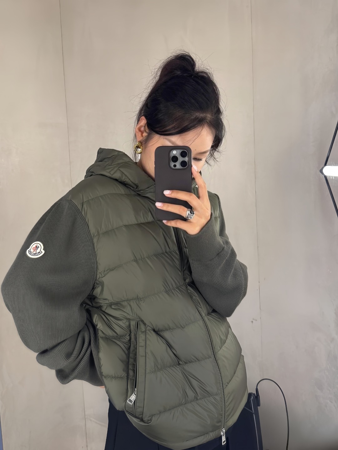 The Mxxcler Knit-Sleeve Mixed Media Down Hoodie Jacket combines lightweight nylon with soft knitted sleeves to create a warm, flexible and premium winter piece. The front panel features high-loft down padding that provides exceptional insulation without adding bulk, while the contrast between the glossy nylon and textured knit adds a refined visual depth.