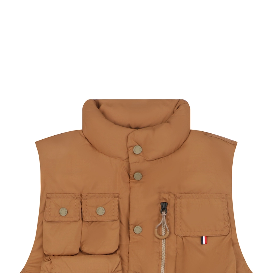 Crafted from high-density nylon fabric, the vest offers excellent tear resistance and durability while maintaining a refined, structured feel. Its wind-resistant properties make it suitable for transitional weather and everyday wear in cooler conditions.