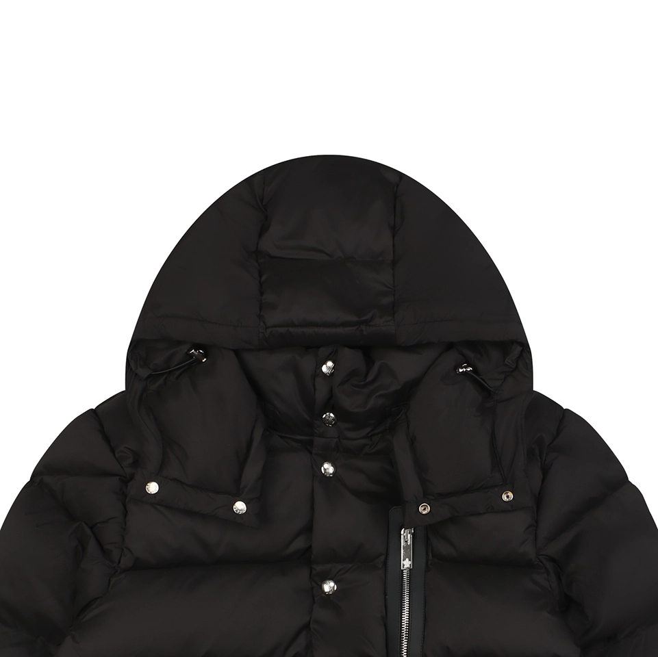 This Mxxcler × 1017 ALYX 9SM Hooded Down Jacket merges advanced technical innovation with refined craftsmanship. Designed by Matthew Williams, the jacket features a minimalist yet distinctive structure highlighted by signature metallic hardware and a unique triple-zip front closure. Crafted from lightweight, silky technical fabric, it delivers a modern urban aesthetic while maintaining excellent warmth and comfort. The detachable hood, stand collar, and functional construction reflect ALYX’s vision of transforming mountain-inspired utility into contemporary citywear, making this jacket ideal for both daily wear and elevated street styling.