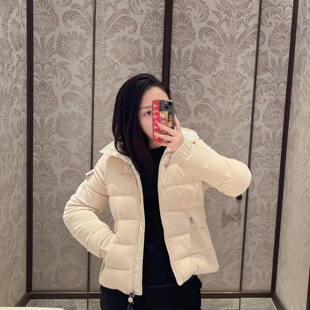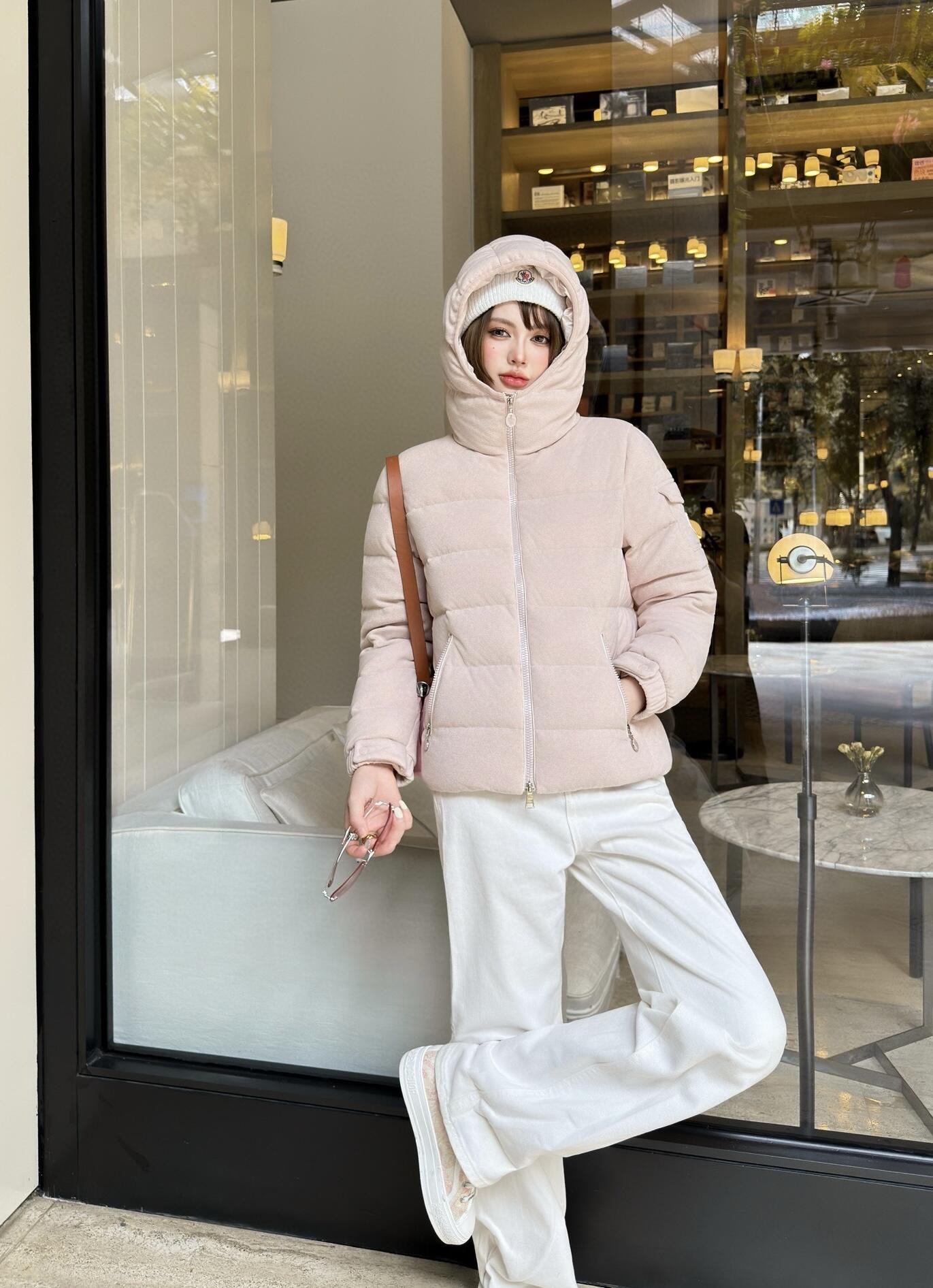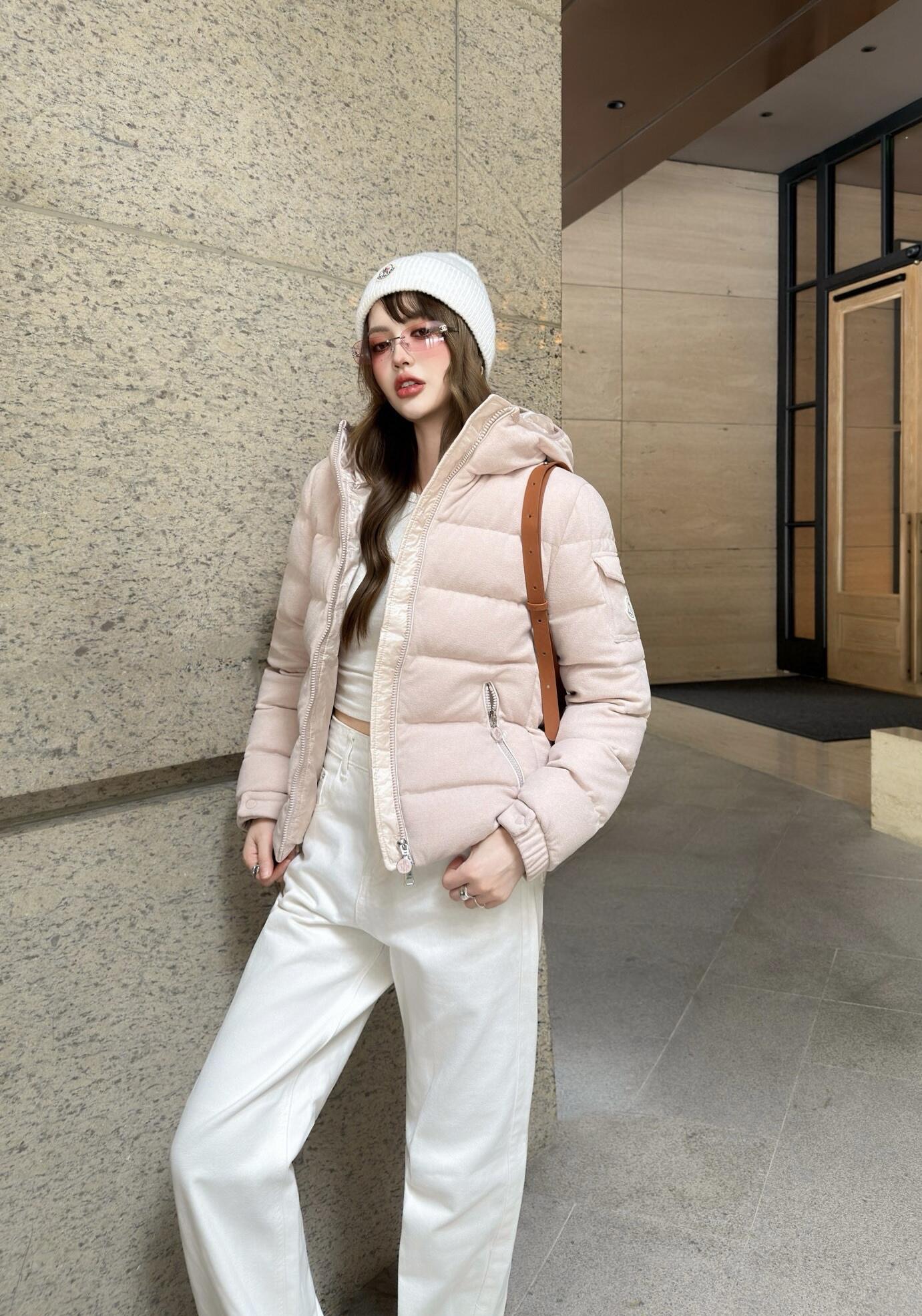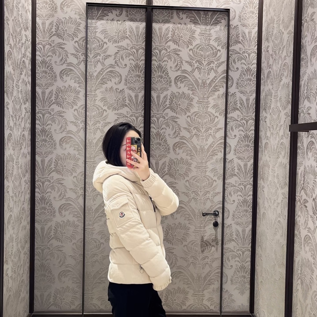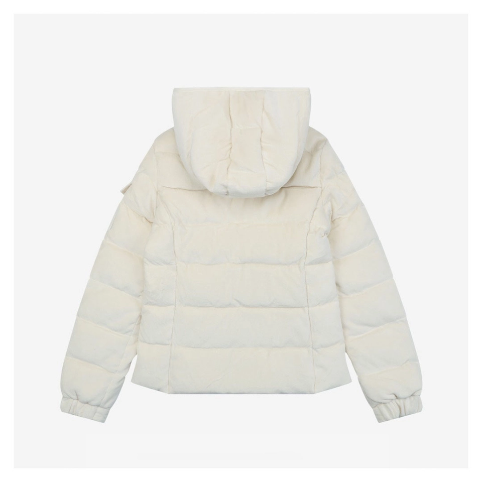 The Mxxcler Yvoire Velvet Hooded Down Jacket is crafted from luxurious velvet fabric, offering a soft, refined touch with a beautiful sheen under light. Beyond its elegant appearance, the fabric provides excellent wind protection and warmth, delivering a cloud-like cozy wearing experience for cold seasons. Designed in a cropped hooded silhouette, it visually elongates the legs and lifts the waistline—perfect even for petite figures. The hood adds a playful yet functional touch, offering extra warmth, while the smooth zipper and practical pockets ensure everyday convenience. Clean tailoring and soft, versatile tones make it effortless to style with any winter wardrobe.