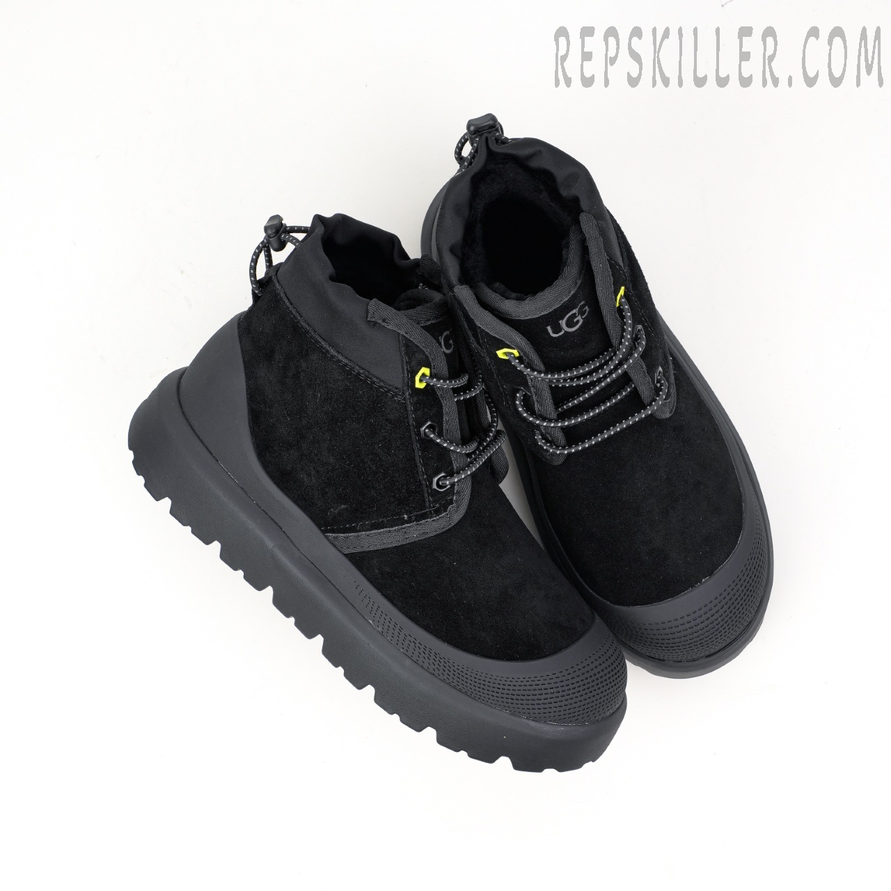 UG*G Neumel Tasman Mid Boot for men and women. Made by a top factory with genuine sheepskin lining, waterproof finish, and chip design. Water-repellent suede upper, 17mm UG*GPURE™ wool insole, and lightweight anti-slip rubber sole. Warm, comfortable, and perfect for winter wear indoors or outdoors.