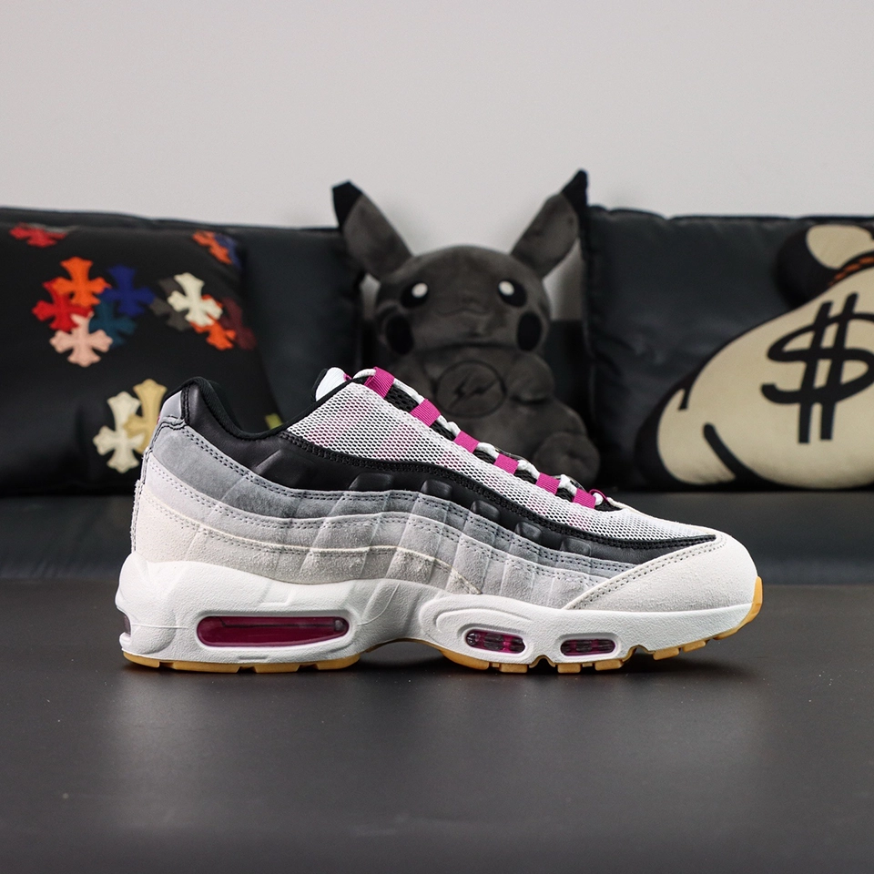 The Nike SB x Air Max 95 ‘Cactus Flower’ transforms the iconic running silhouette into a skate-ready statement piece. Preserving the original’s layered design, the upper features gradient suede side panels, shifting from black to grey with a tactile feel. Fuchsia hits energize the look, showing up on the webbed eyestays, mini Swoosh, and Air units, while the Nike SB heel branding adds a reflective flash. Grounded by a white PU midsole and a gum outsole, this hybrid sneaker balances heritage aesthetics with modern skate functionality.
