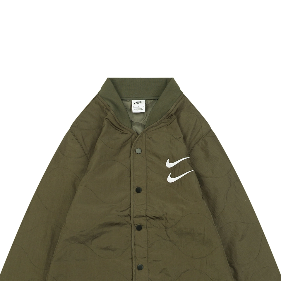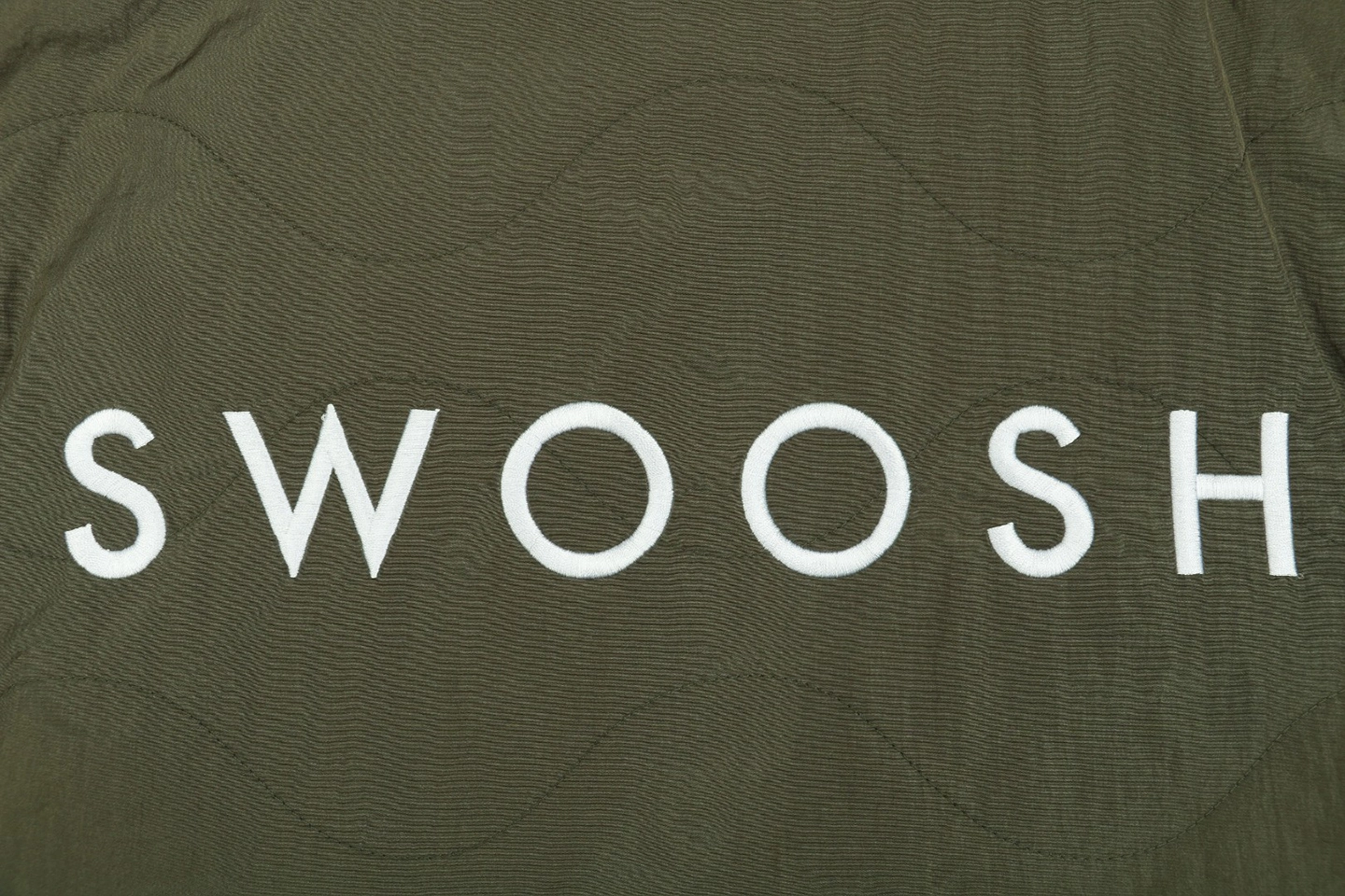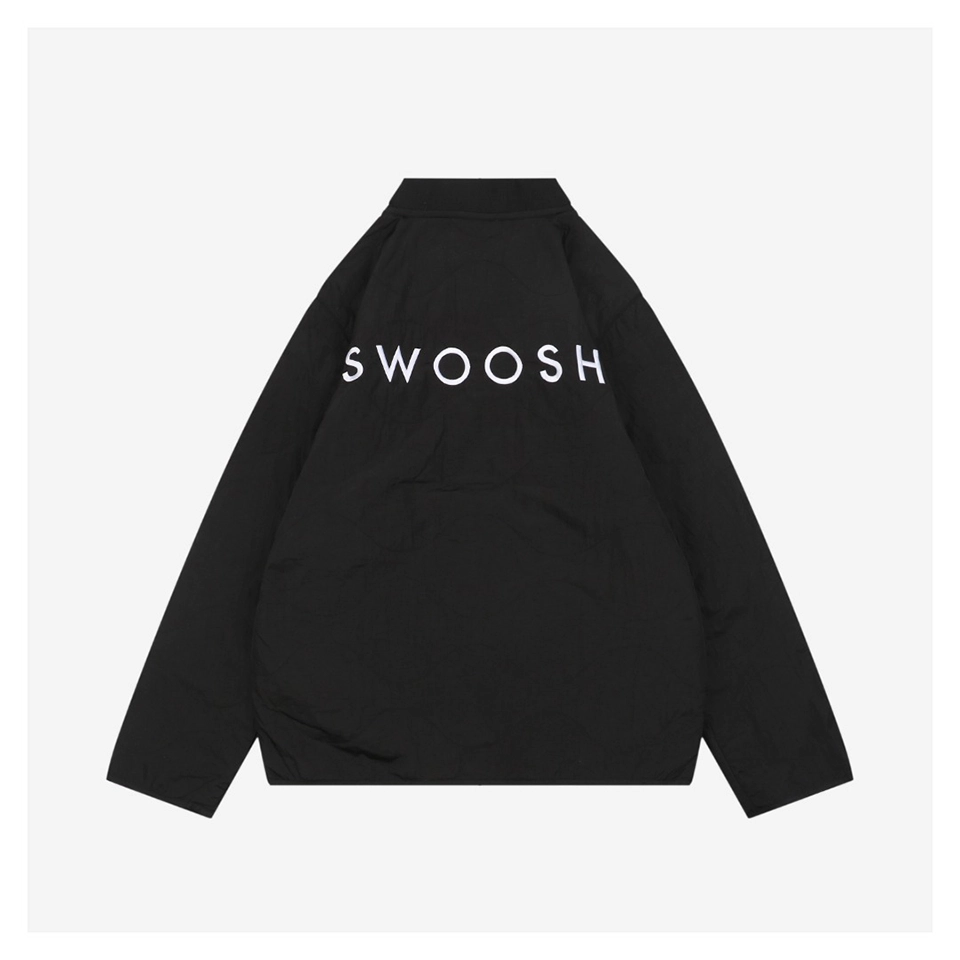 The Nike Swoosh Embroidered Cotton Shirt Jacket blends athletic heritage with a clean, minimalist aesthetic. Featuring double Swoosh embroidery on the chest and bold “SWOOSH” lettering across the back, this lightly padded shirt-style jacket offers a structured yet casual look. Made from durable cotton-blend fabric with subtle wave quilting, it’s perfect for layering across seasons. The snap-button closure and ribbed collar complete its refined streetwear profile.