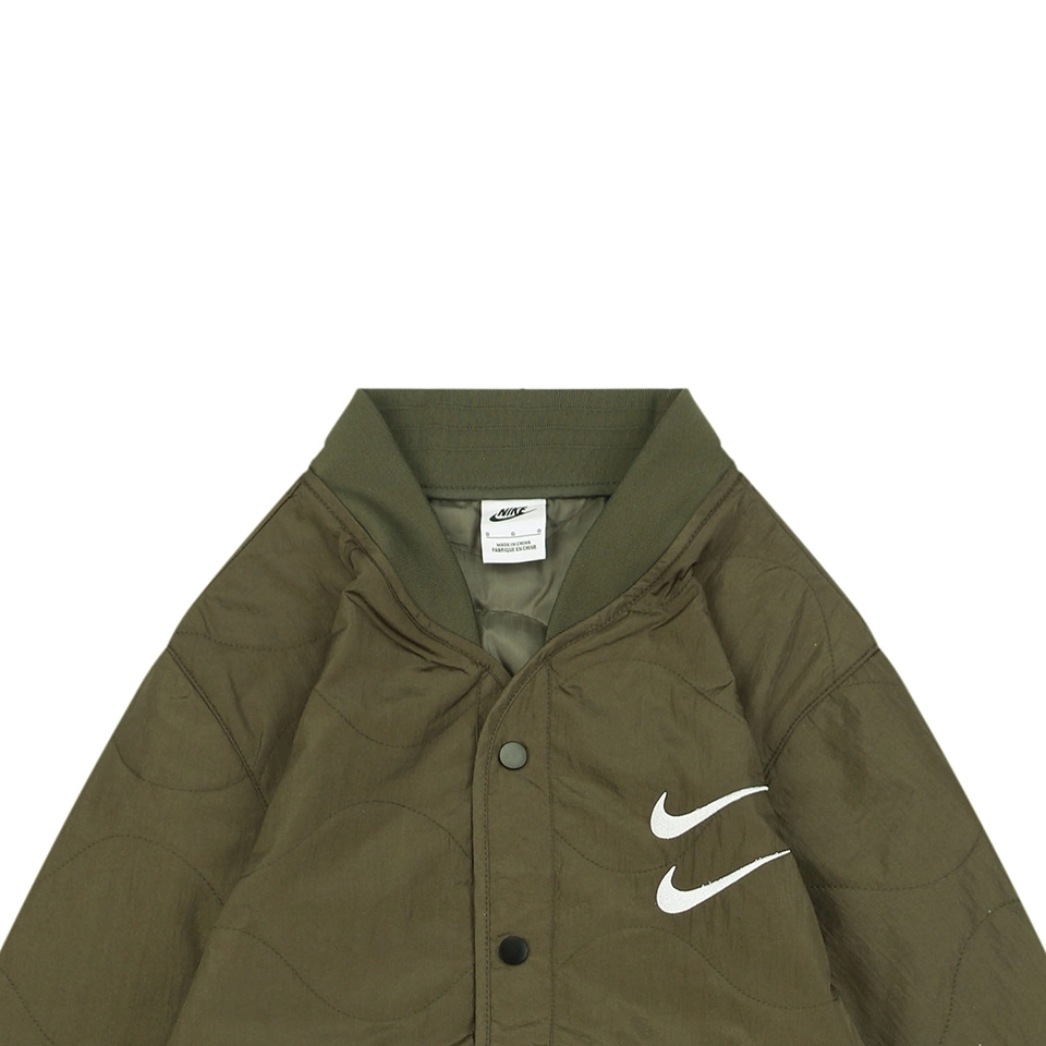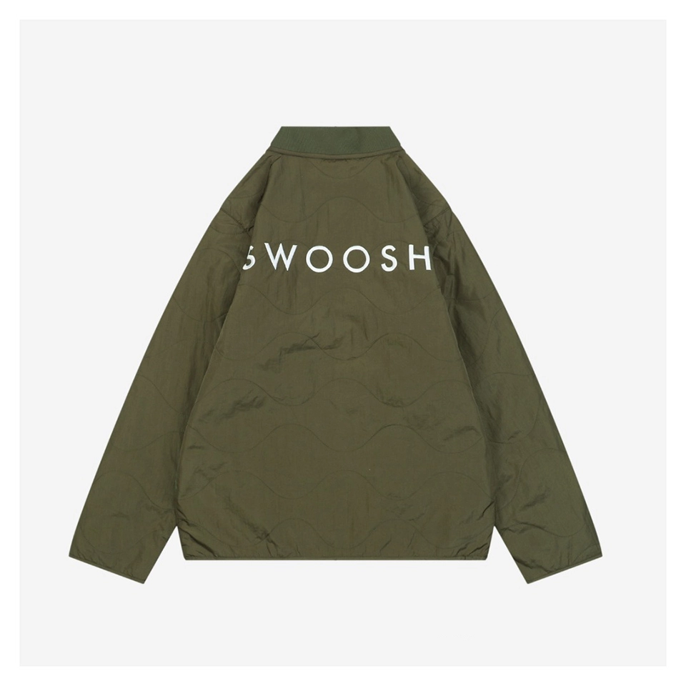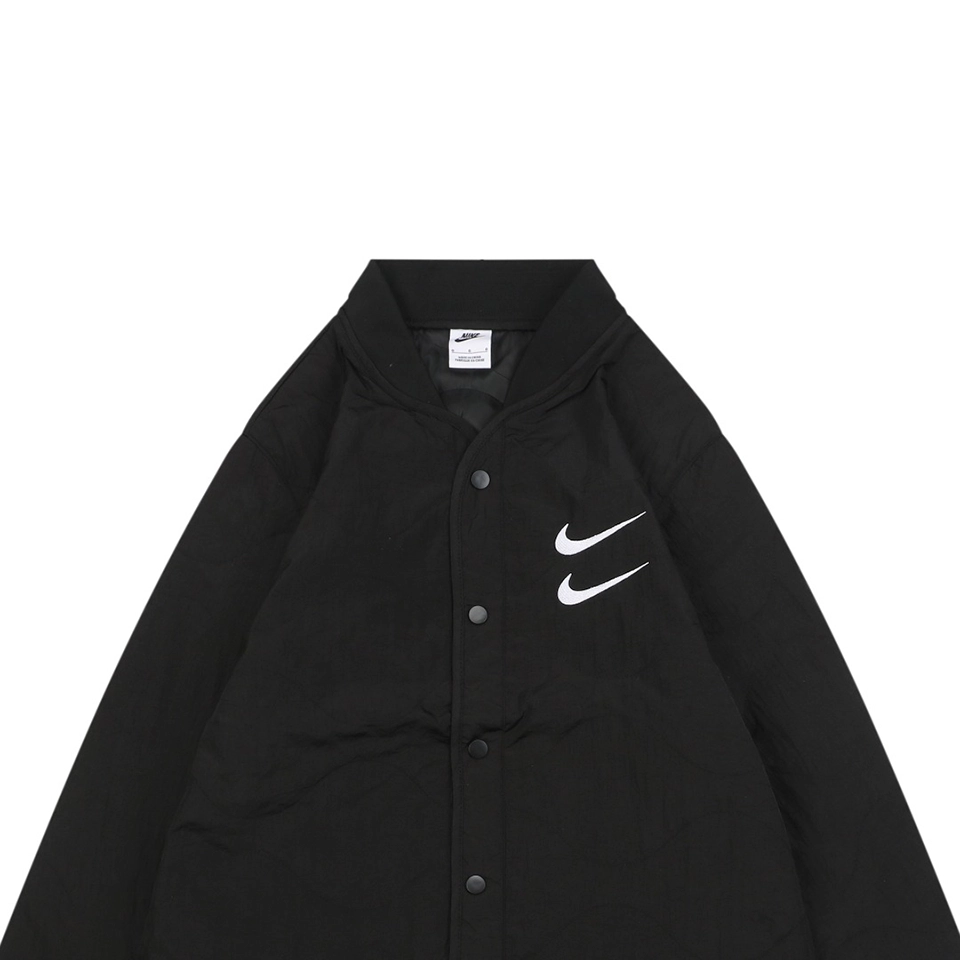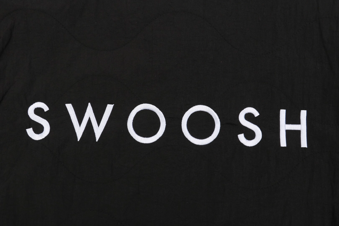 The Nike Swoosh Embroidered Cotton Shirt Jacket blends athletic heritage with a clean, minimalist aesthetic. Featuring double Swoosh embroidery on the chest and bold “SWOOSH” lettering across the back, this lightly padded shirt-style jacket offers a structured yet casual look. Made from durable cotton-blend fabric with subtle wave quilting, it’s perfect for layering across seasons. The snap-button closure and ribbed collar complete its refined streetwear profile.