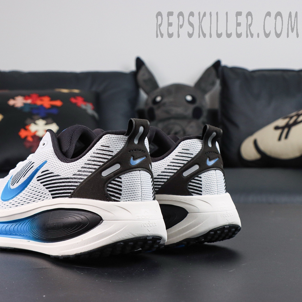 The Nike Zoom Vomero 18 ‘White Black Photo Blue’ blends responsive performance with a bold visual aesthetic for runners who demand both function and flair. Featuring a dual-layer engineered mesh upper, the shoe maximizes breathability while maintaining structure. A sculpted ZoomX midsole delivers high-energy return, while the blue-to-black gradient detailing and glossy Swoosh create a dynamic finish. With enhanced heel support and ZoomX foam cushioning, this versatile runner is ideal for long-distance training, tempo efforts, or everyday wear.