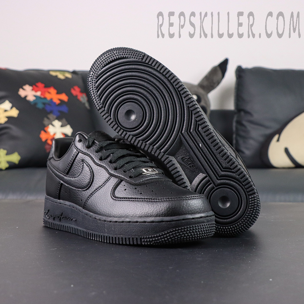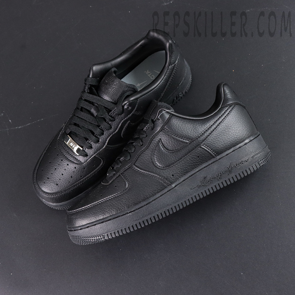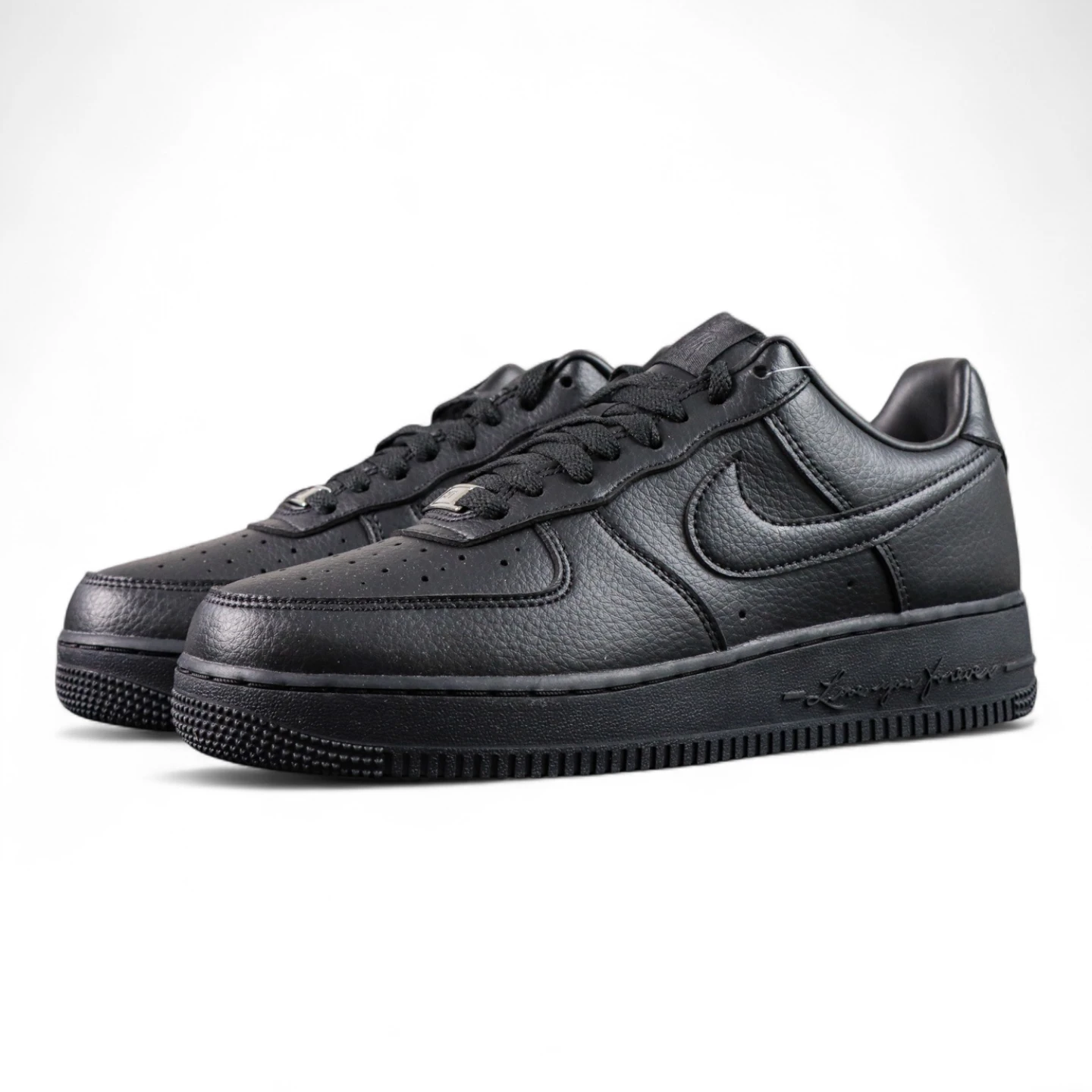 The NOCTA x Air Force 1 Low ‘Certified Lover Boy’ Black brings Drake’s refined touch to the timeless all-Black AF1. The shoe features a premium white tumbled leather upper with a tonal Swoosh and alternating NOCTA and Nike Air logos on the heels. Classic details like the perforated toe box, padded low-cut collar, and traditional lacing maintain its heritage look. A black midsole completes the design, highlighted by the heartfelt “Love You Forever” inscription along the lateral side, blending minimal elegance with personal sentiment.