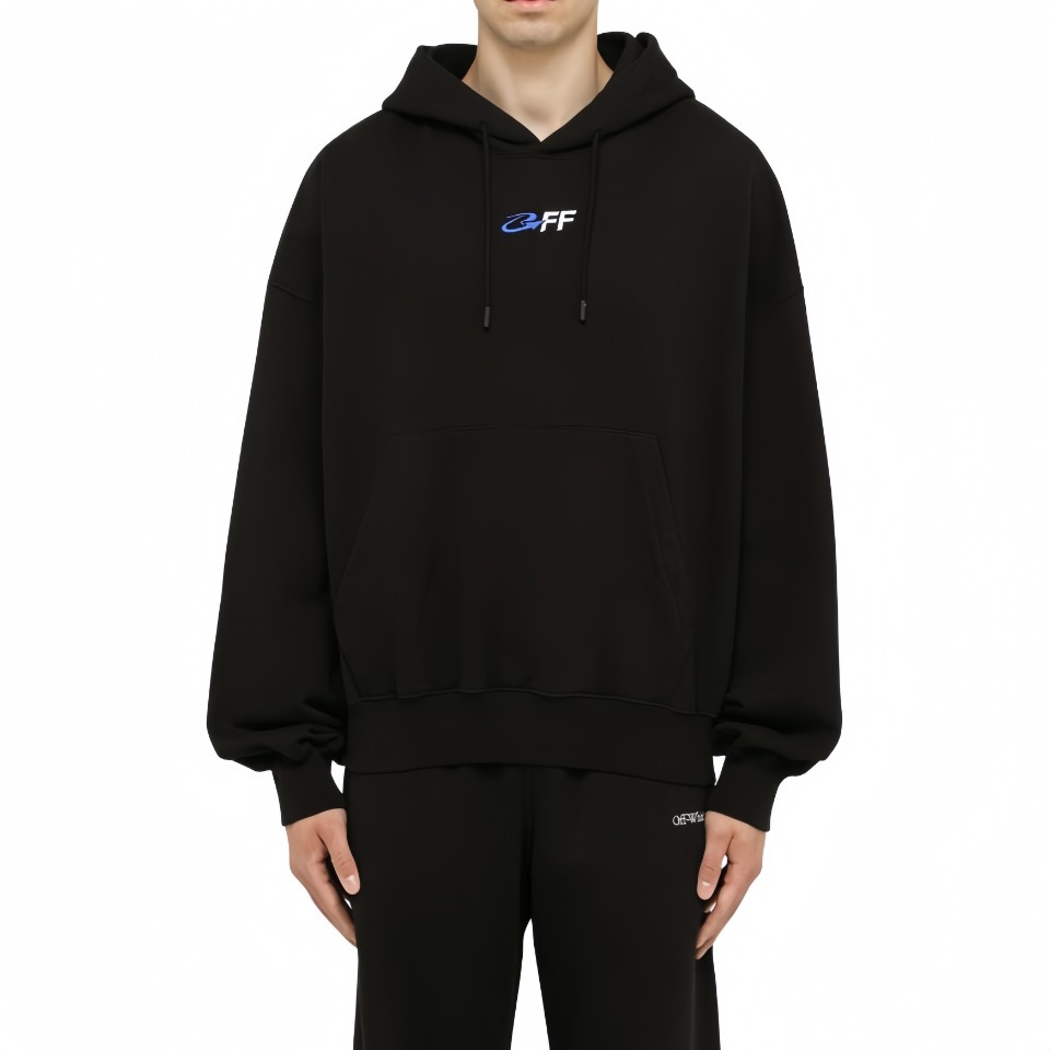 The Off-White Blue Arrow Earth Graphic Hoodie captures the brand’s signature visual storytelling with bold contrast. Featuring a clean front with a subtle “OFF” embroidery in blue and white, this piece surprises on the back with an expansive graphic that includes a globe sketch, arrows, and signature text elements. Crafted from soft fleece fabric, it’s designed for both comfort and statement-making style. The dropped shoulders and ribbed hems complete a relaxed silhouette perfect for streetwear layering.