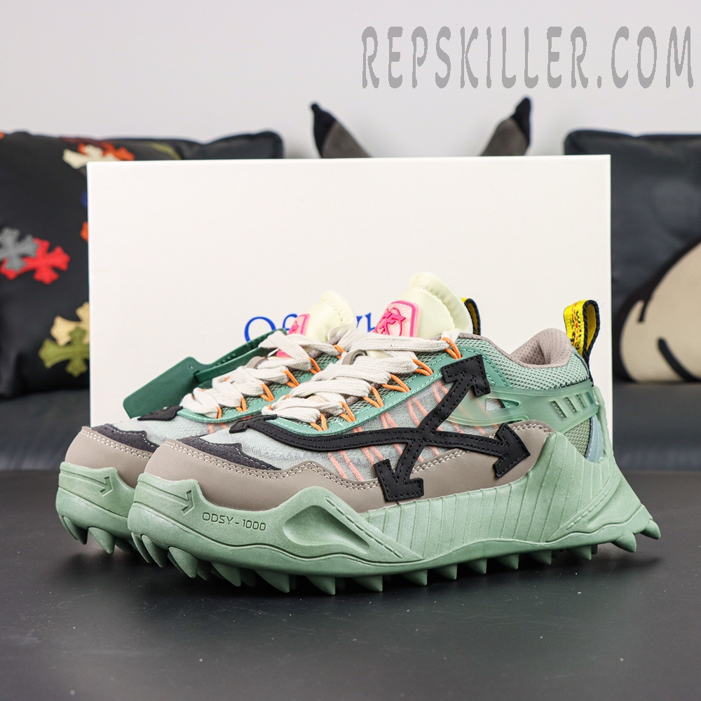 The Off-White ODSY-1000 ‘Mint’ brings a bold, experimental edge to luxury sneakers, combining trail-inspired performance with signature streetwear aesthetics. This standout colorway features a refreshing mint green base, elevated by earthy tones and vibrant accents for a dynamic, layered look.