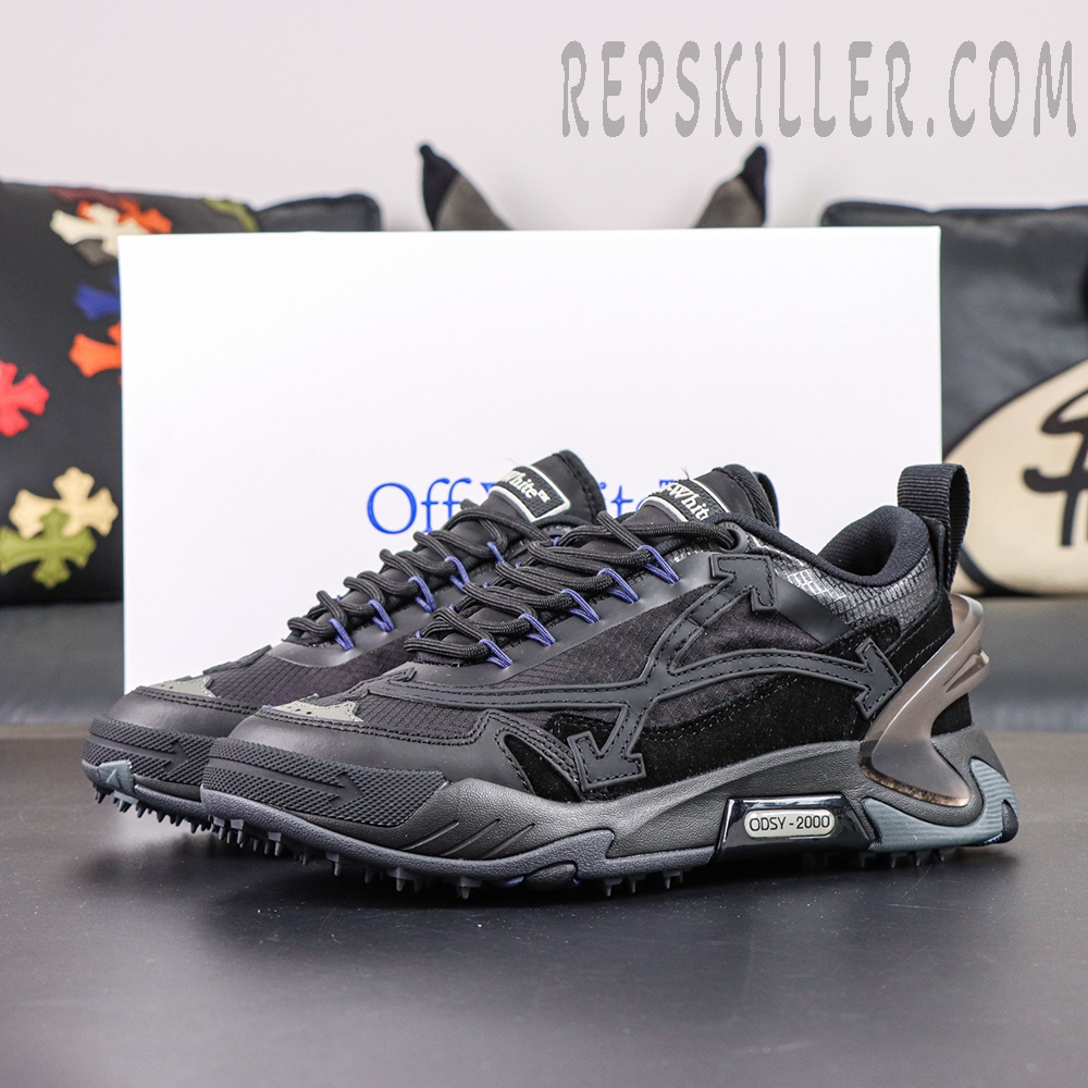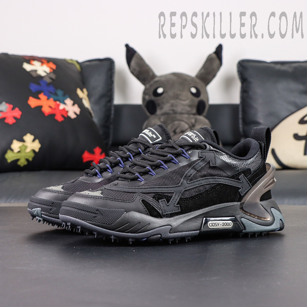 The Off-White ODSY-2000 ‘Black’ delivers a bold, stealthy take on the brand’s signature chunky sneaker. Designed with a layered all-black upper, this pair combines technical aesthetics with luxury streetwear appeal, making it an essential for modern sneaker rotations.
