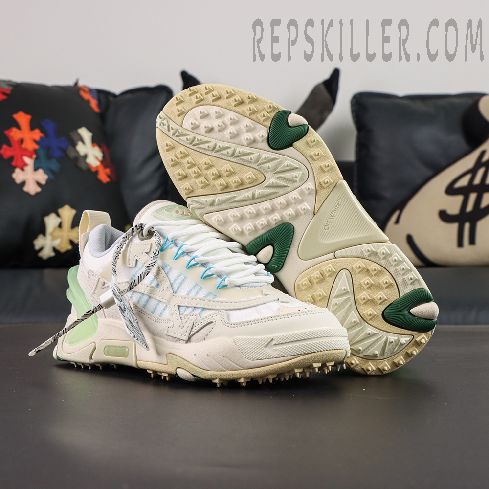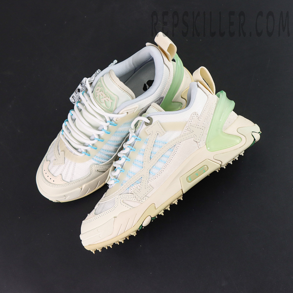 The Off-White ODSY-2000 ‘Cream Light Blue’ (OWIA268F21FAB0010440) delivers a refined yet futuristic aesthetic, combining technical trail-inspired design with signature Off-White industrial elements.