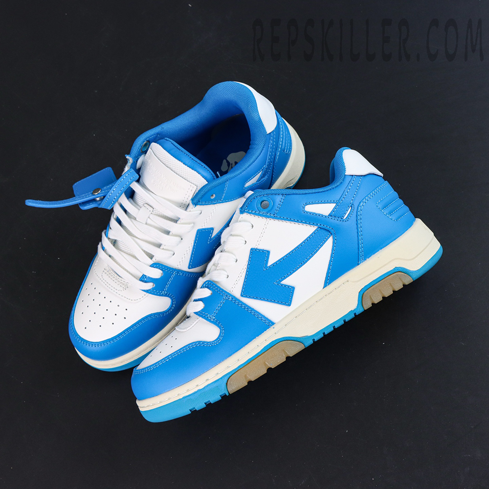 The Off-White Out of Office ‘Blue White’ brings a bold yet clean aesthetic, combining fresh white leather with striking sky blue overlays for a standout streetwear look.