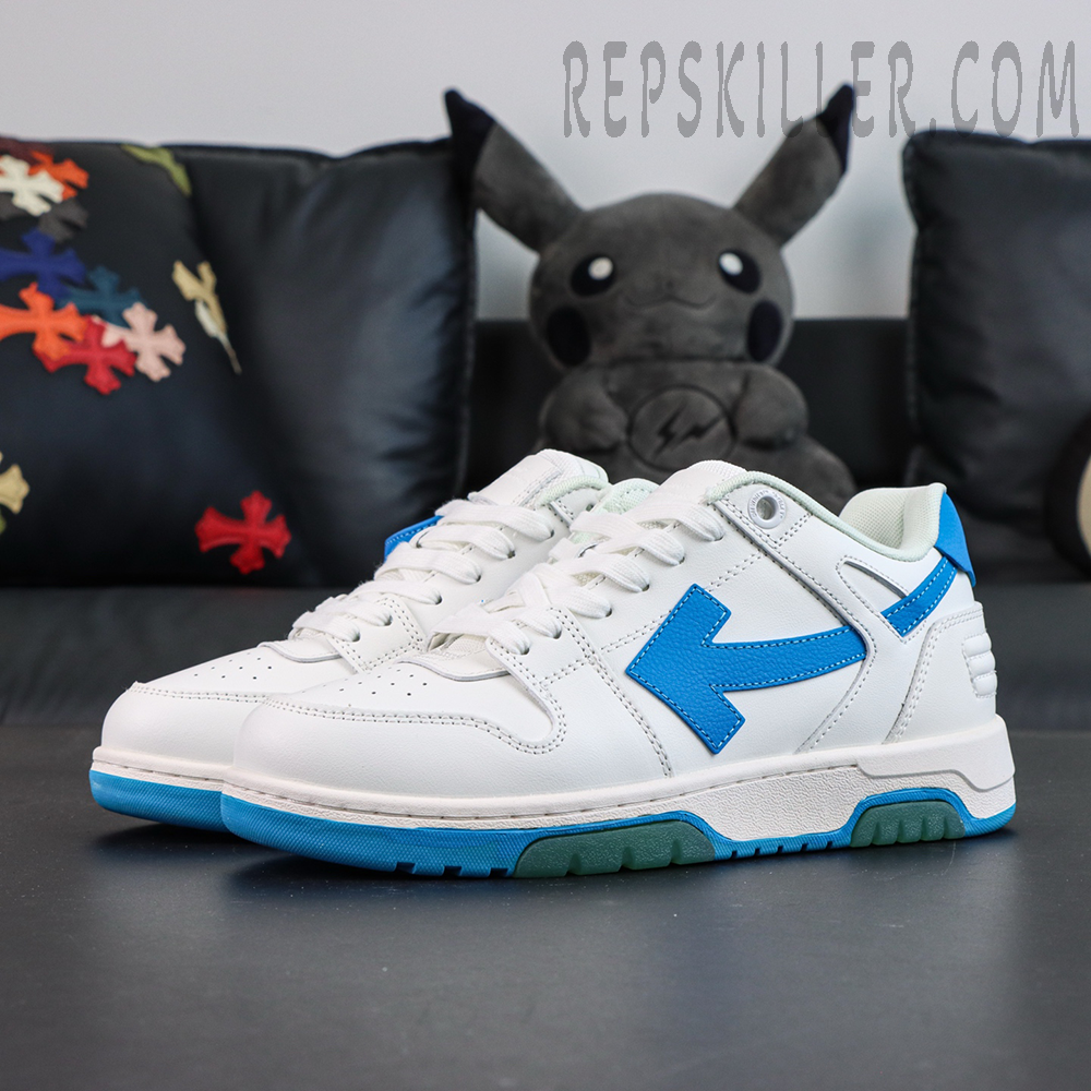 The Off-White Out of Office Low ‘White Blue’ delivers a crisp and sporty aesthetic, combining clean white tones with vibrant blue accents for a fresh everyday statement.