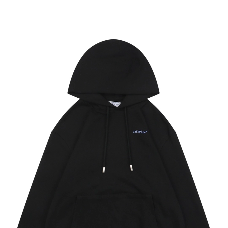 Details include custom-dyed drawcords, woven neck label (upgraded from previous 3D silicone), correct multi-tag wash labels, silicone hangtags, and full original-spec trims. With a relaxed silhouette and elevated graphic execution, this hoodie embodies OFF-WHITE’s signature mix of minimalism and visual impact.