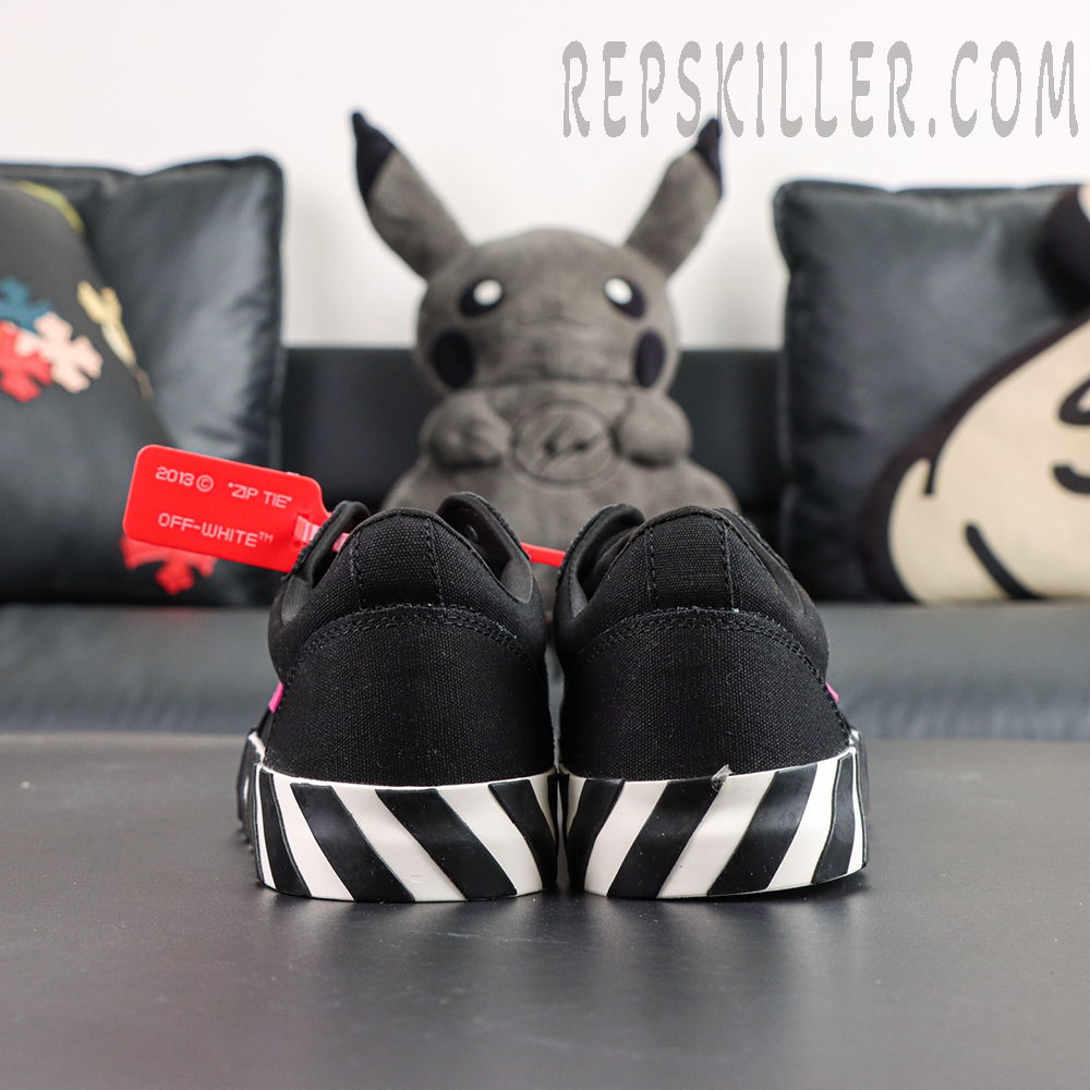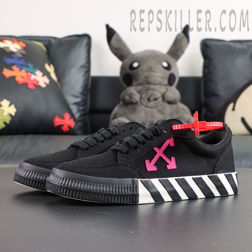The Off-White Vulc Sneaker ‘Black Fuchsia’ brings a bold, high-contrast look to classic streetwear, combining a sleek dark base with vibrant signature detailing for standout appeal.
