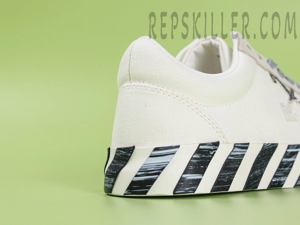 • Midsole: Black and White Striped Rubber — Displays Off-White’s industrial branding signature.