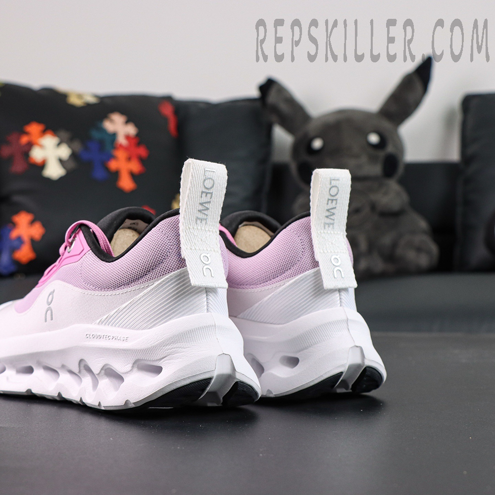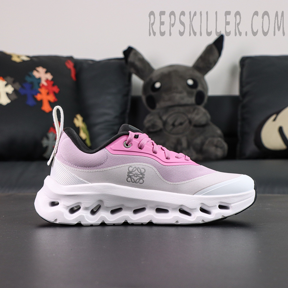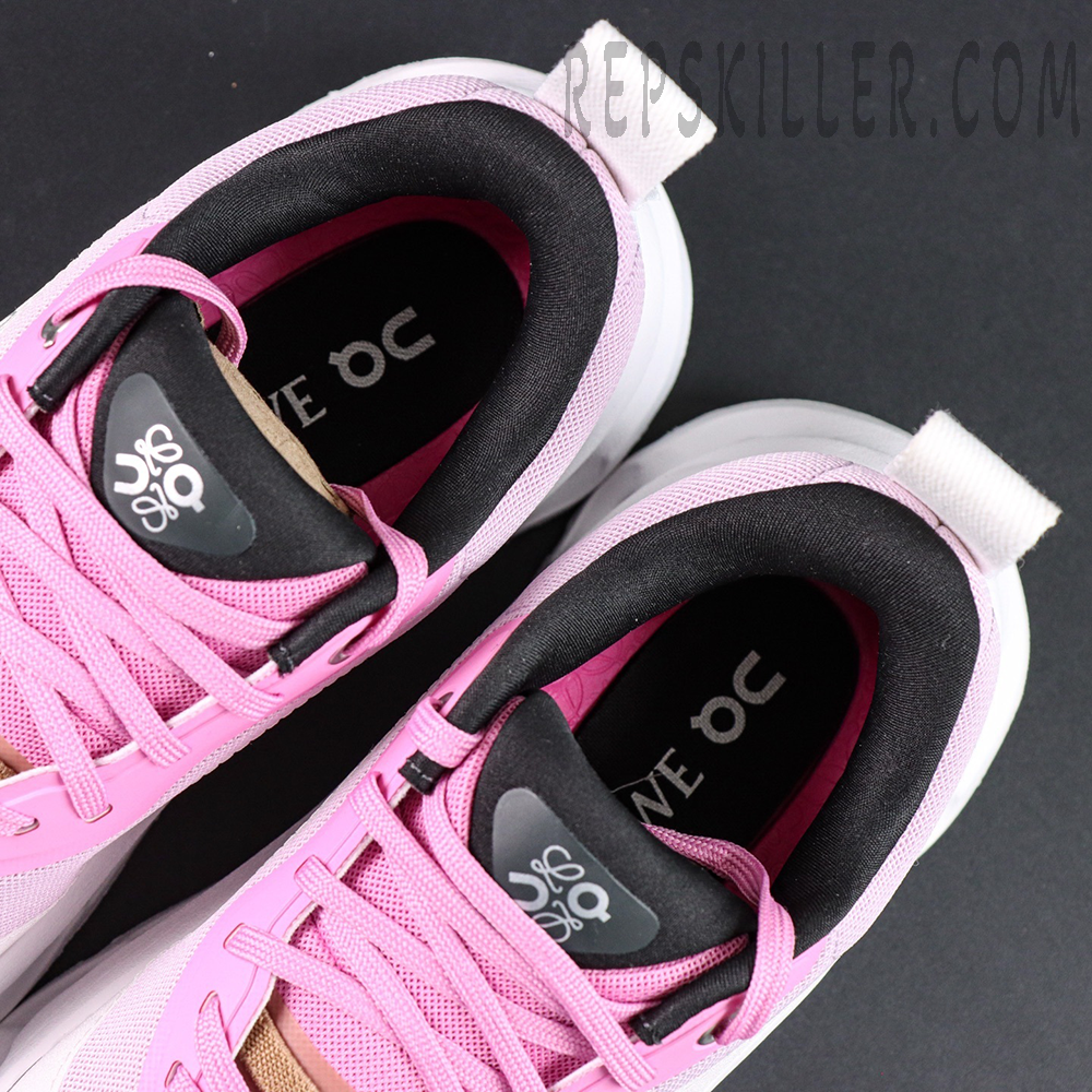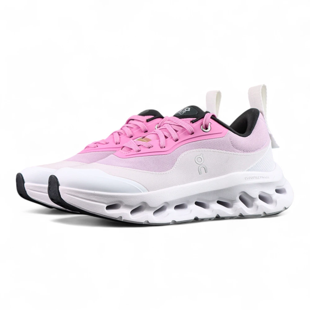The ON L x Cloudtilt 2 ‘Pink White’ reimagines minimalist design with a vibrant touch. Featuring a breathable white mesh upper accented by soft pink tones on the tongue, lining, and logo, it delivers a refreshing yet refined look. The sculpted CloudTec Phase™ midsole combined with Helion™ superfoam provides lightweight, responsive cushioning, blending high-performance comfort with modern, fashion-forward style.