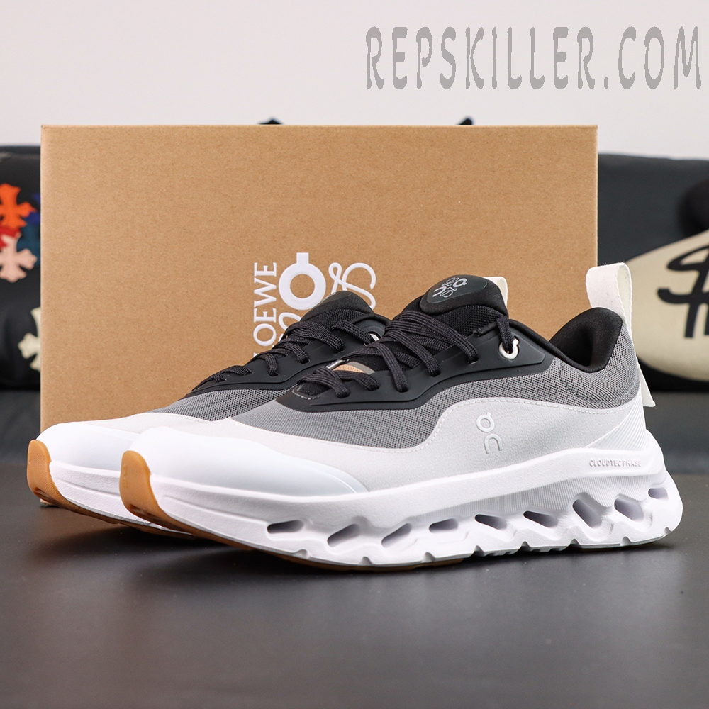 The ON L x Cloudtilt 2 ‘Black White’ fuses Swiss performance engineering with high fashion elegance. Crafted in collaboration with Spanish luxury house L, this sneaker features precision-knit textile uppers in a gradient black-to-white colorway for a streamlined look. The sculpted CloudTec Phase™ midsole delivers adaptive cushioning with a distinctive futuristic profile, while the Helion™ superfoam ensures a responsive, lightweight ride. Finished with L branding and a discreet loop tab at the heel, this silhouette balances urban style and high-performance function in one seamless design.