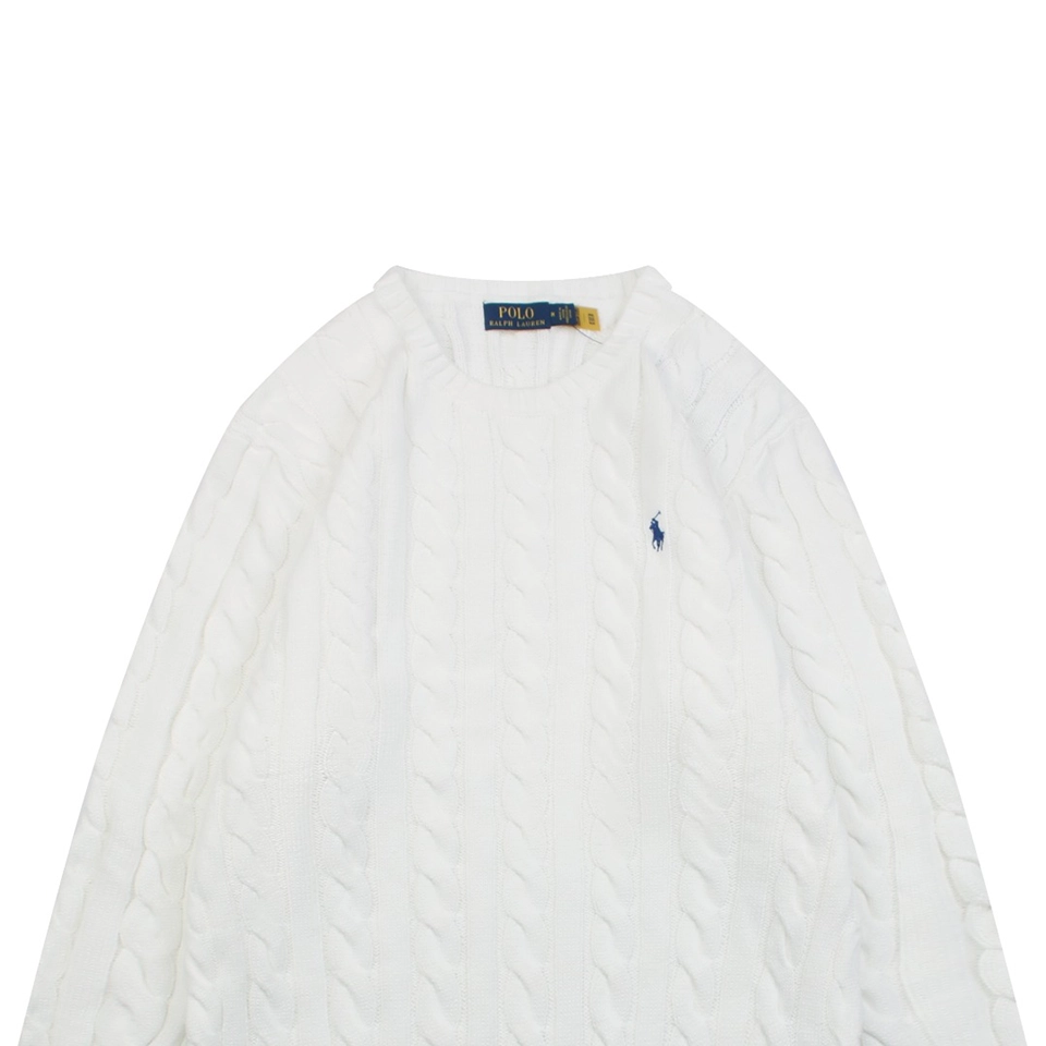 Designed with a traditional cable-knit construction, the sweater features a double-ply yarn structure that enhances thickness, strength, and long-term shape retention. The yarn-dyed process ensures even coloration and excellent color fastness, keeping the sweater vibrant after repeated washing. Ribbed cuffs, hem, and neckline provide a comfortable yet secure fit, while reinforced shoulder taping helps preserve the garment’s structure over time. Finished with the iconic embroidered Pony logo on the chest, the Ralph Lauren Cable-Knit Crewneck Pony Logo Sweater is ideal for standalone wear or refined seasonal layering, offering both versatility and enduring style.