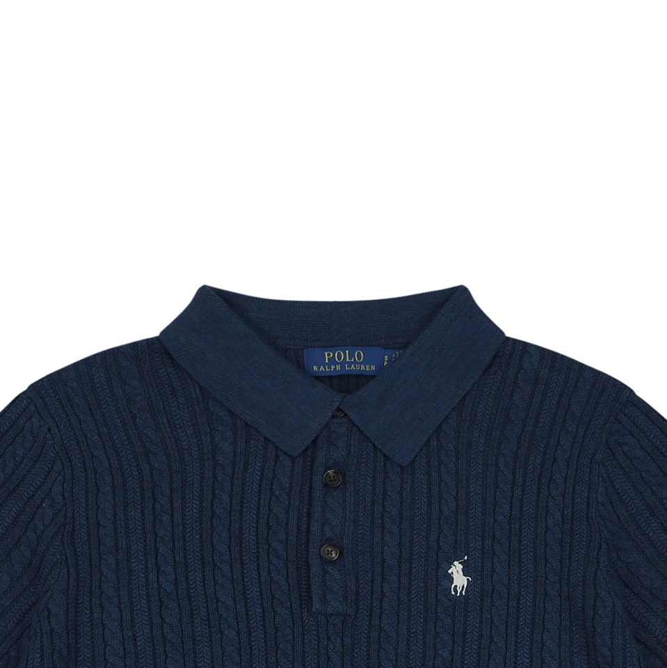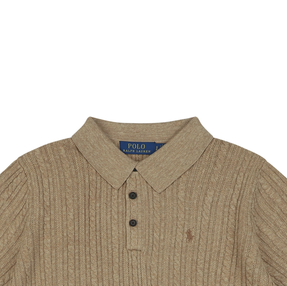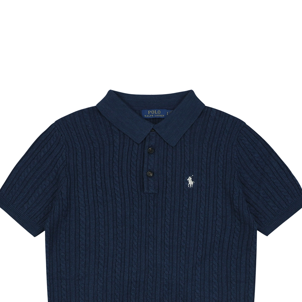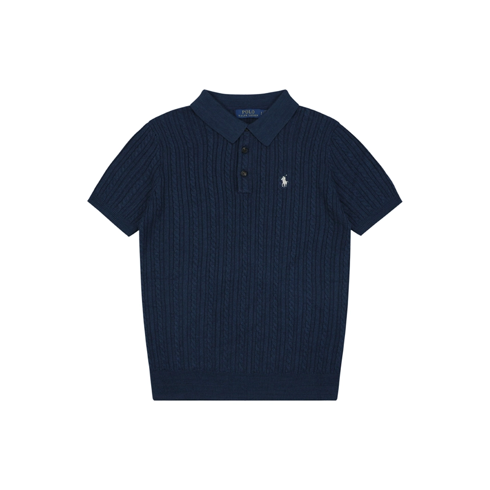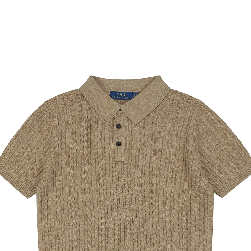 The Ralph Lauren Cable Knit Polo T-Shirt blends classic Ivy style with refined knit craftsmanship.