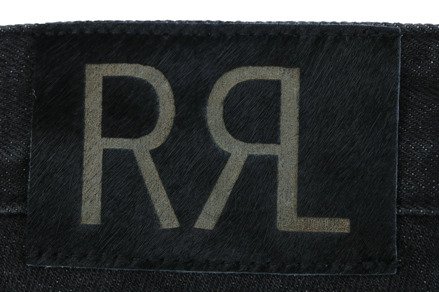 Designed with a traditional five-pocket layout and zip fly closure, the jeans prioritize durability and functionality. Raw, unfinished hems allow natural fraying and wear patterns to emerge, reinforcing the garment’s vintage appeal. A black suede leather patch with the signature RR logo anchors the design at the waistband, quietly signaling Black Label craftsmanship.