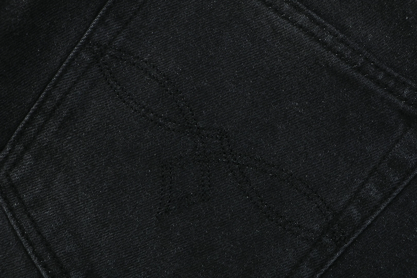 Made from heavyweight 14oz Japanese selvedge denim, the fabric is woven slowly on vintage shuttle looms to preserve natural slub textures and authentic character. The deep black dye treatment delivers a rich, subdued tone that evolves over time, developing subtle fades unique to the wearer.