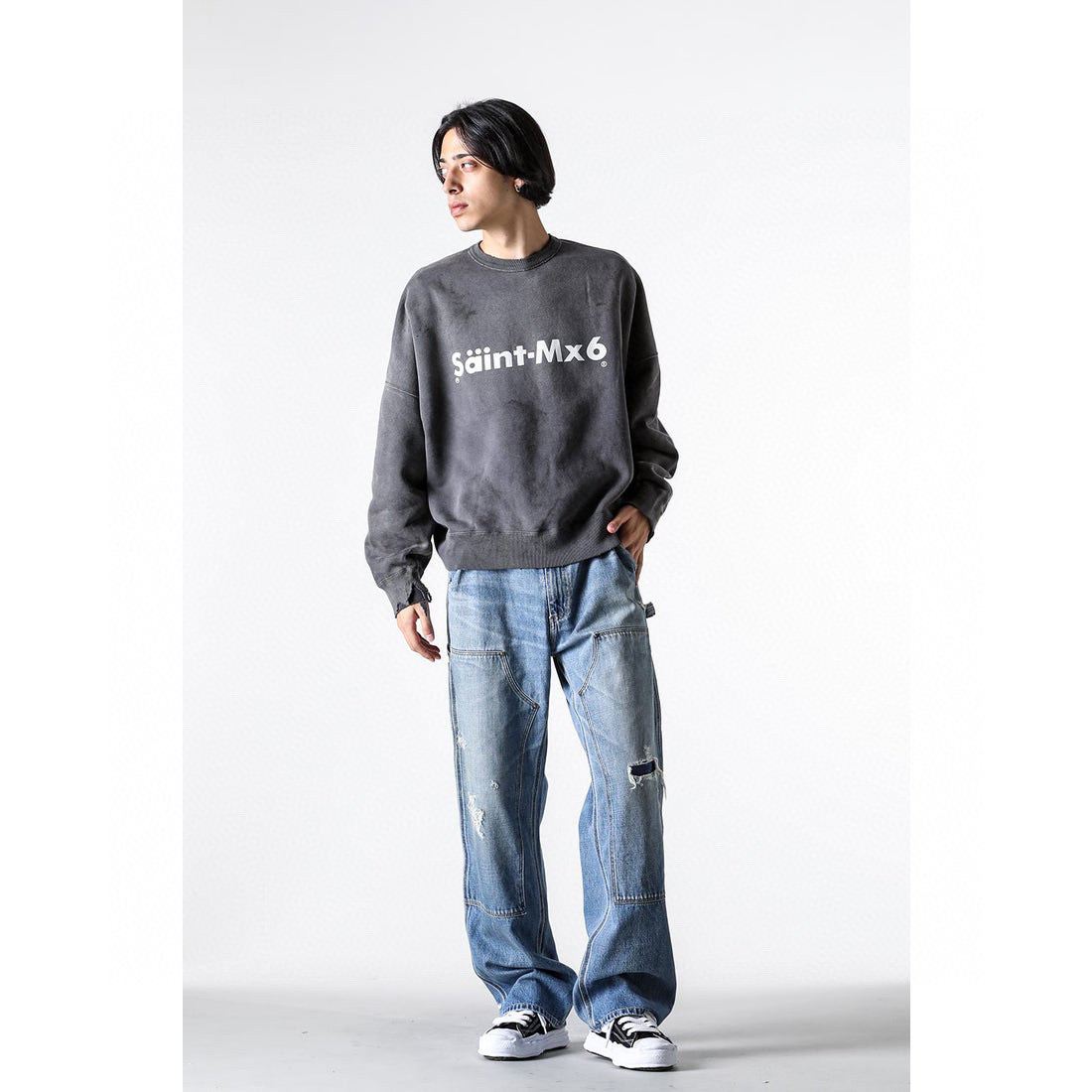 Saint Michael CHAOS Distressed Crewneck Sweatshirt Saint Michael CHAOS Distressed Crewneck Sweatshirt