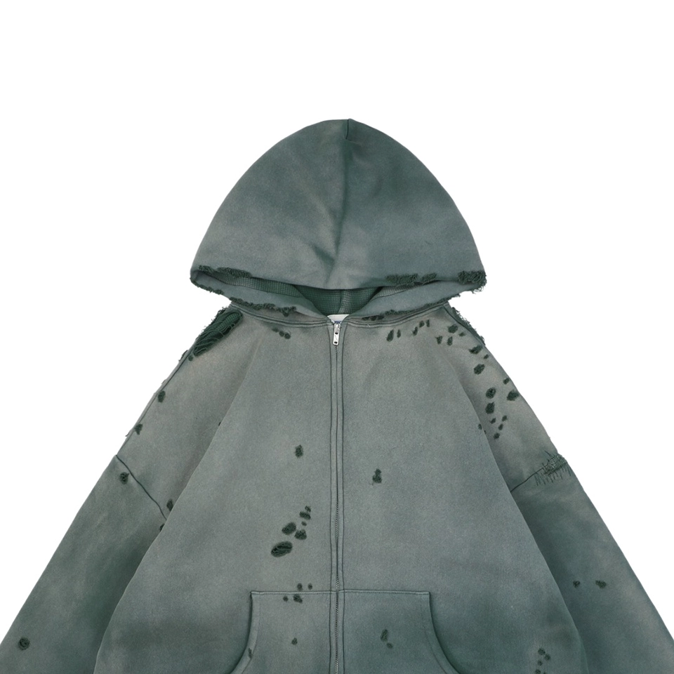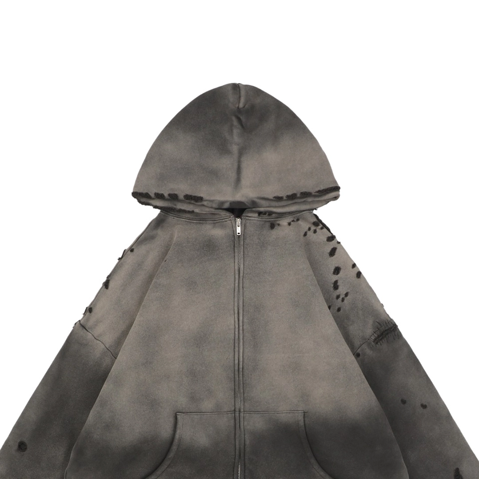 With its relaxed silhouette and zip-up hooded design, the piece works effortlessly as a standalone layer or styled with inner garments, making it a standout option for fall and winter streetwear wardrobes.