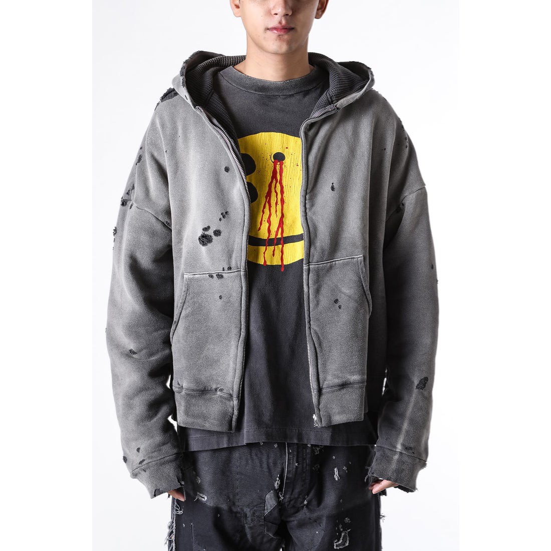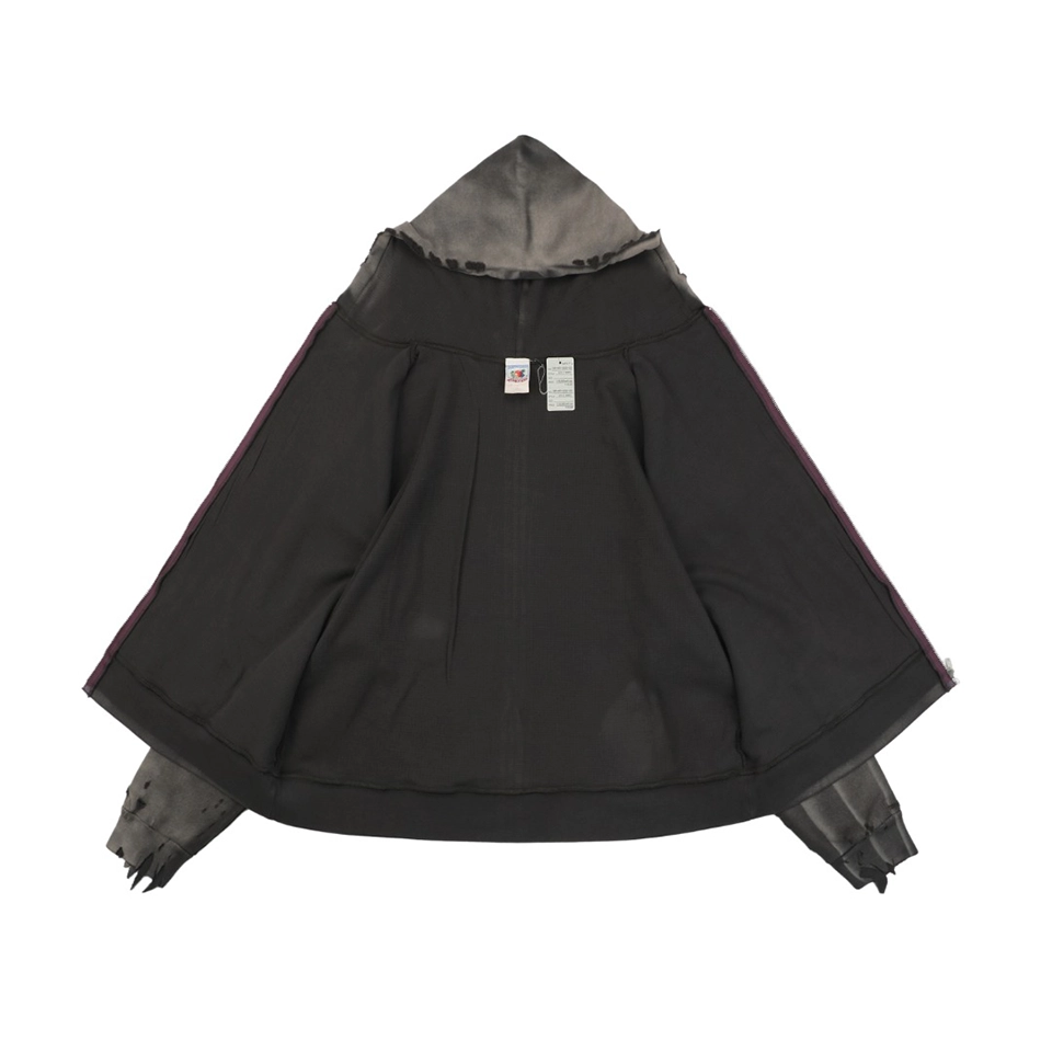 The Saint Michael Distressed Double-Layer Waffle Zip Hoodie embodies the brand’s signature fusion of vintage aesthetics and handcrafted distressing techniques. Designed as a wearable art piece, this hoodie combines heavy-duty construction with expressive detailing for a bold streetwear statement.
