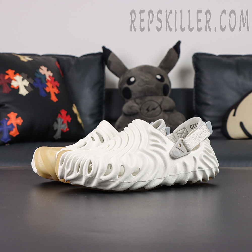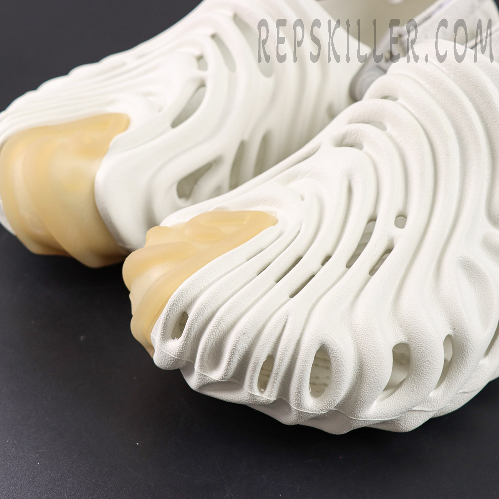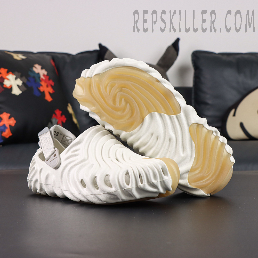 Crafted from lightweight Croslite™ foam, this model arrives in a soft ivory “Stratus” colorway, offering a refined and versatile look. The upper and outsole are sculpted with flowing concave ridges, inspired by Salehe Bembury’s signature fingerprint motif, creating a bold yet organic visual identity while enhancing flexibility and support.