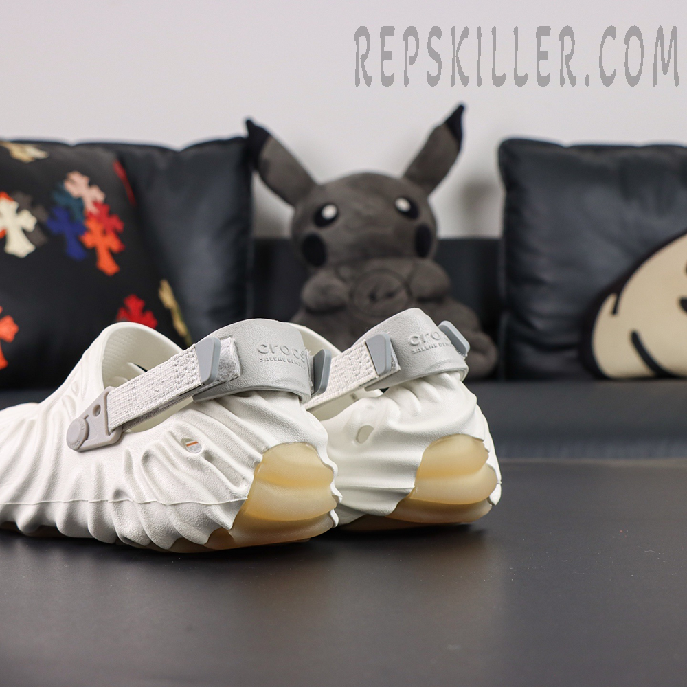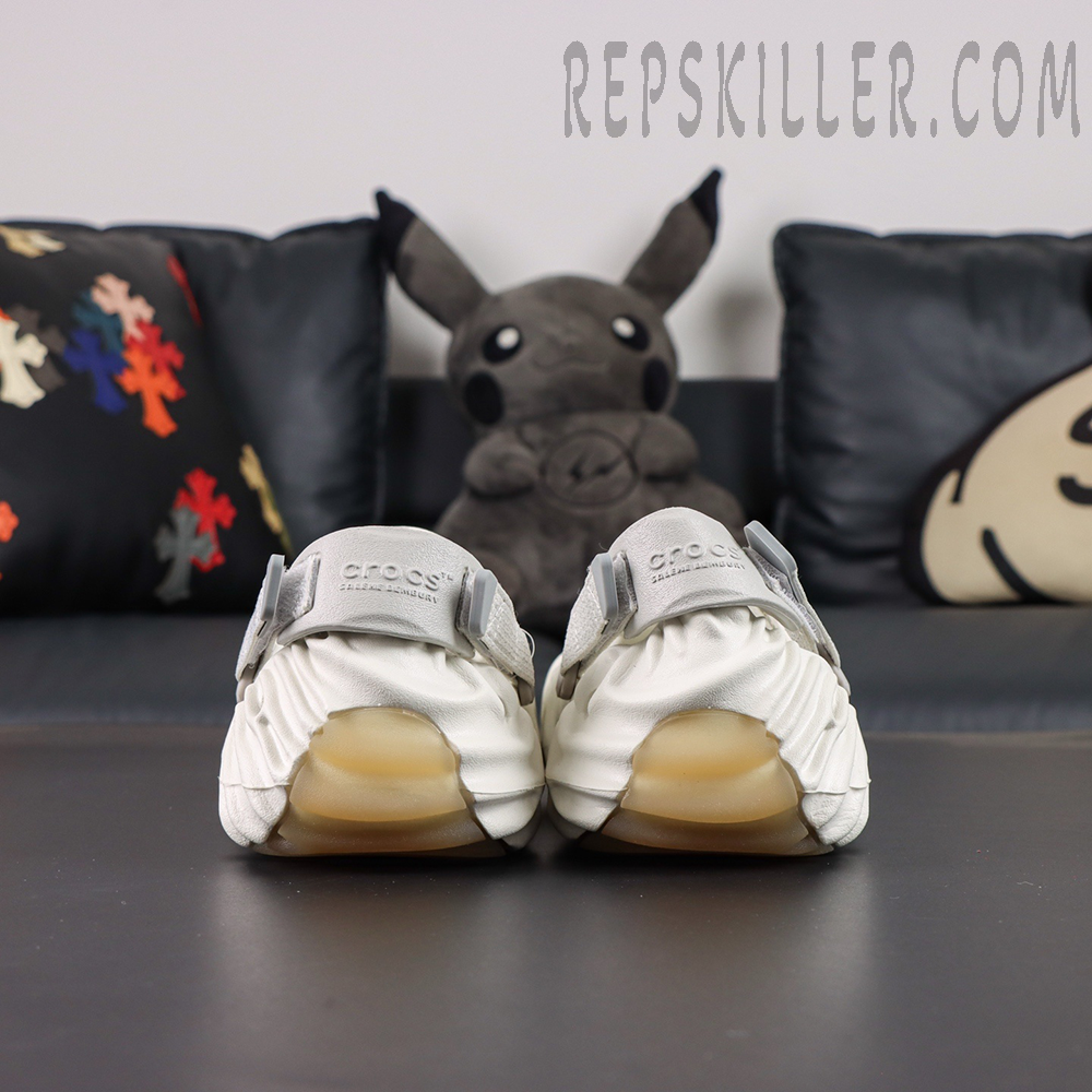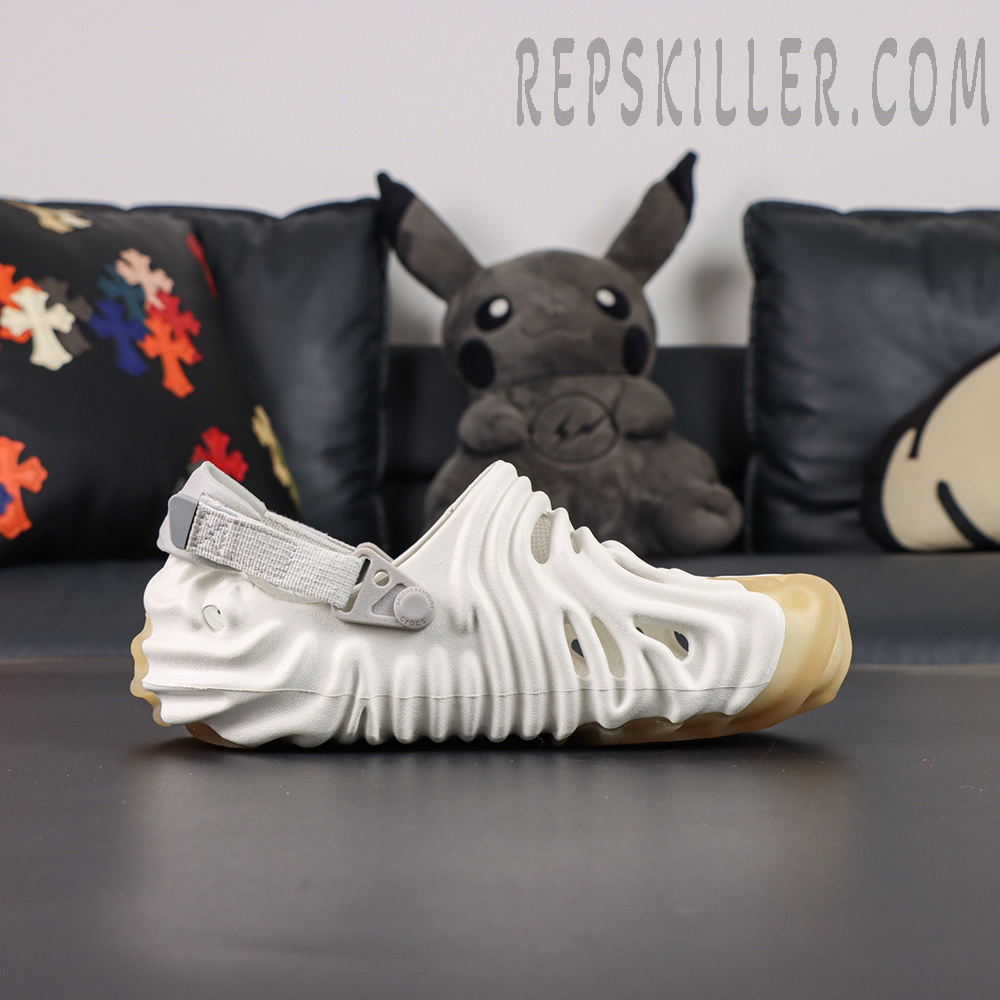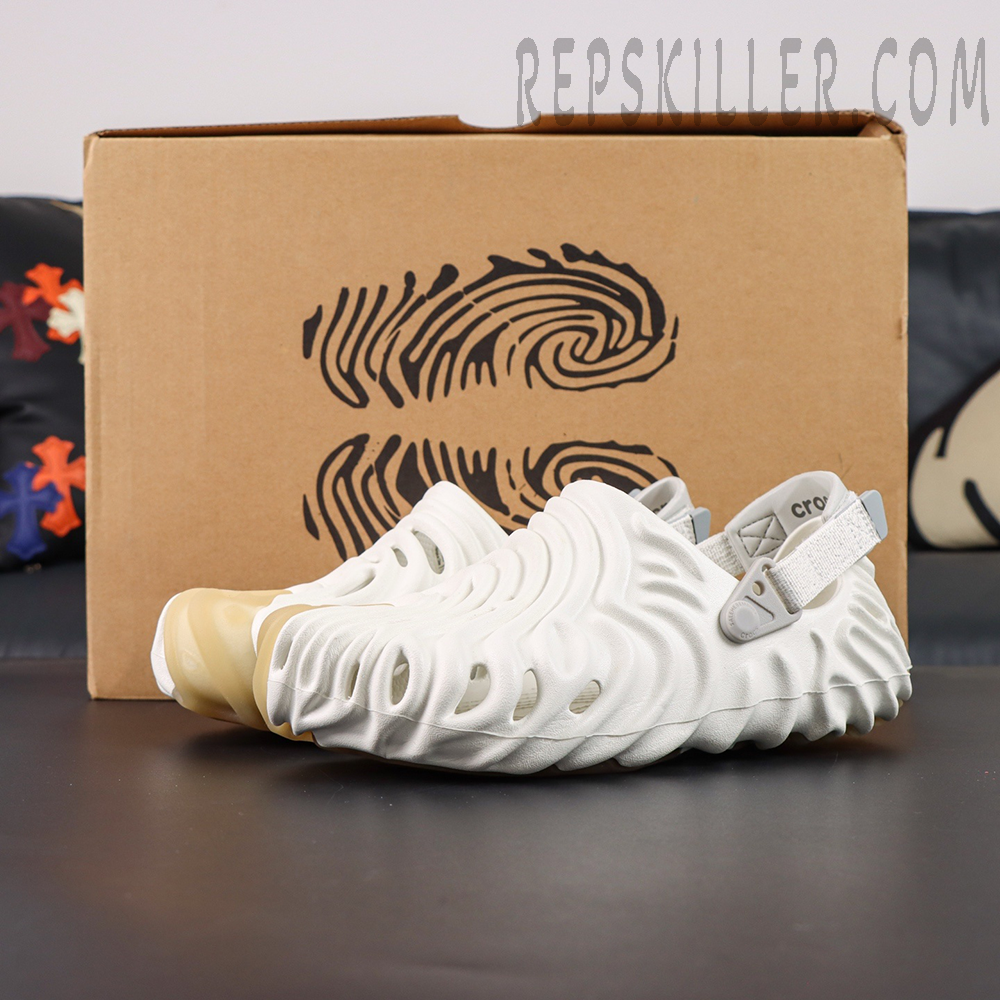 Crafted from lightweight Croslite™ foam, this model arrives in a soft ivory “Stratus” colorway, offering a refined and versatile look. The upper and outsole are sculpted with flowing concave ridges, inspired by Salehe Bembury’s signature fingerprint motif, creating a bold yet organic visual identity while enhancing flexibility and support.