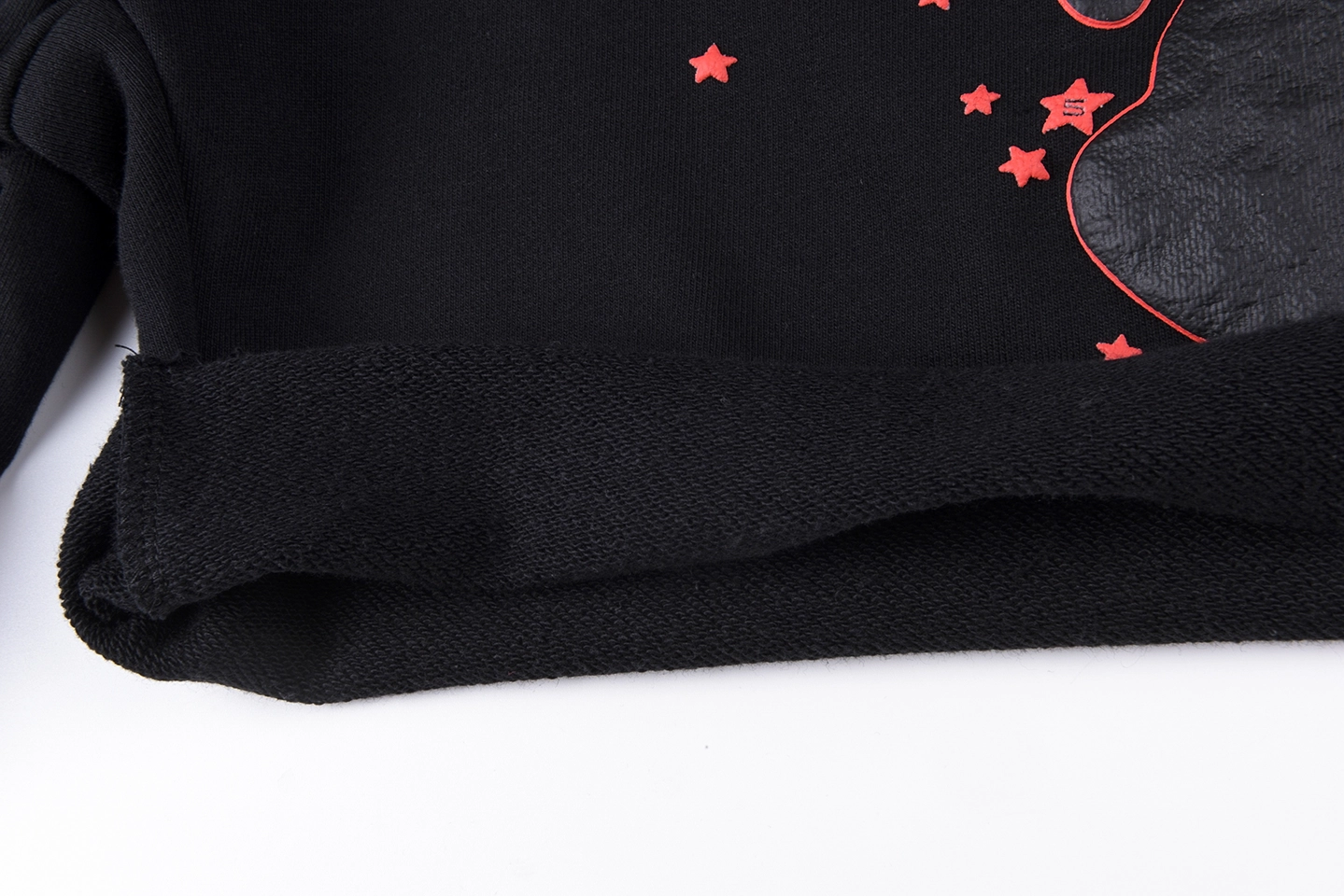 The base features a classic black colorway, contrasted by standout red outline Sp5der graphics and star motifs across the front. The raised graphic elements add depth and texture, creating a layered visual effect that elevates the overall design.