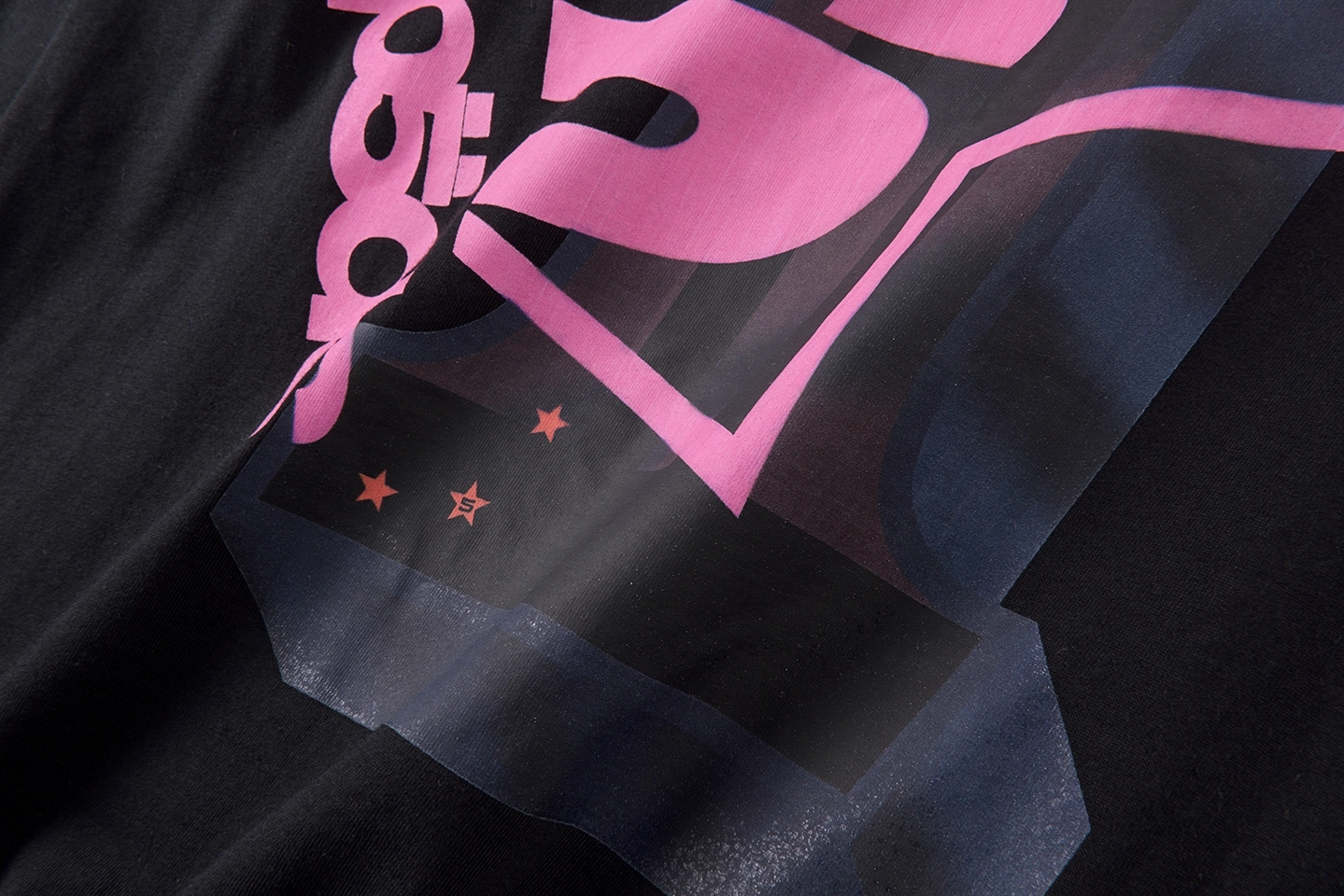 The Sp5der Pink Star Logo Shirt delivers a bold Sp5der streetwear statement through oversized branding and high-contrast graphics. Built on a clean jet black cotton base, the back is dominated by a massive pink “5 spëder” logo print, creating instant visual impact. The front features a layered Sp5der star emblem graphic with scattered red star accents, adding depth and motion to the design. Finished with a relaxed long sleeve silhouette, this piece blends graphic dominance, iconic branding, and everyday street versatility.